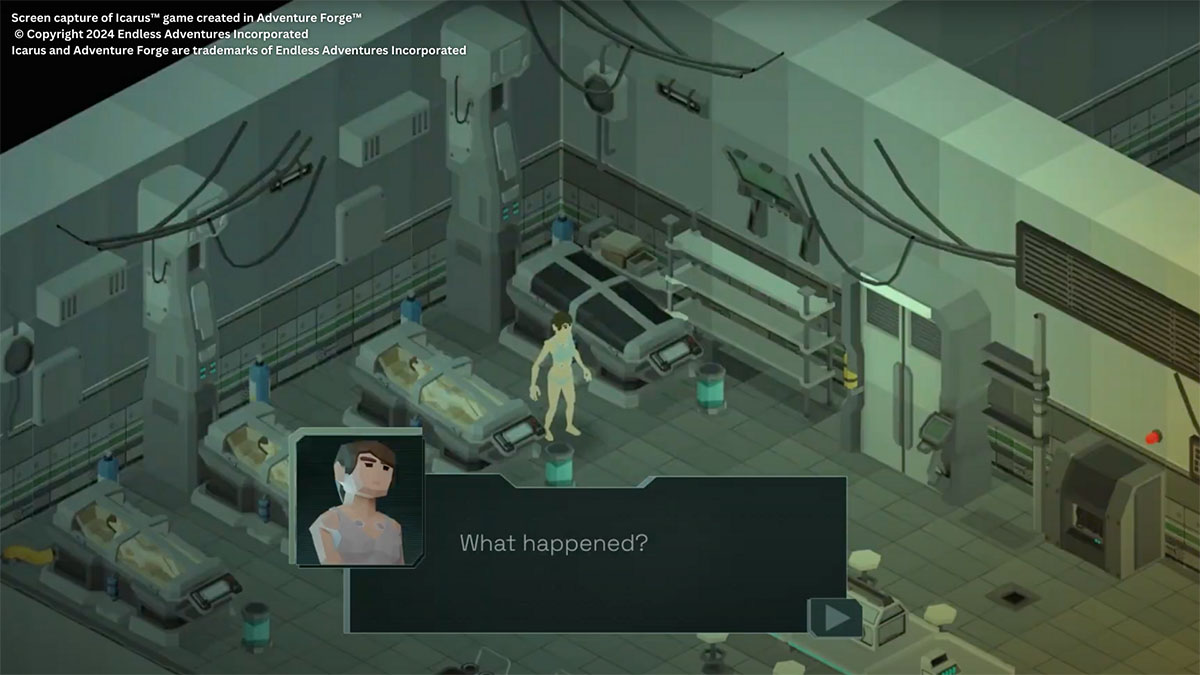 Los creadores pueden crear, compartir y jugar sus propios juegos de aventuras en un entorno de trabajo que no requiere programación. Adventure Forge abre el desarrollo de juegos a todo el mundo, independientemente de su experiencia técnica. Solo se necesita imaginación.