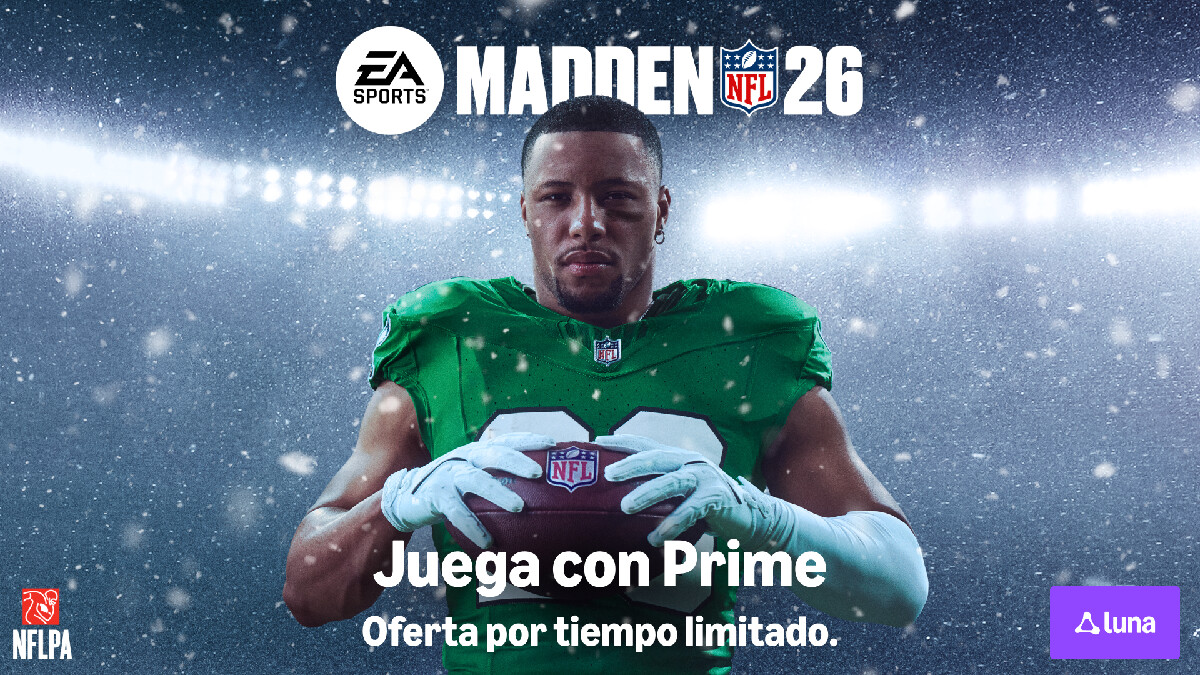 Justo a tiempo para los playoffs de la NFL y como preparación para la Super Bowl LX, los miembros Prime pueden jugar a EA SPORTS Madden NFL 26 en Luna sin coste adicional siempre que la oferta en la nube de Luna esté disponible, desde el 10 de enero hasta el 10 de febrero. Ve un avance (o vuelve a ver) todos los enfrentamientos de las eliminatorias, juega con tus equipos favoritos, crea el equipo de fútbol americano de tus sueños con leyendas de la NFL y estrellas actuales, y compite online con los mejores.