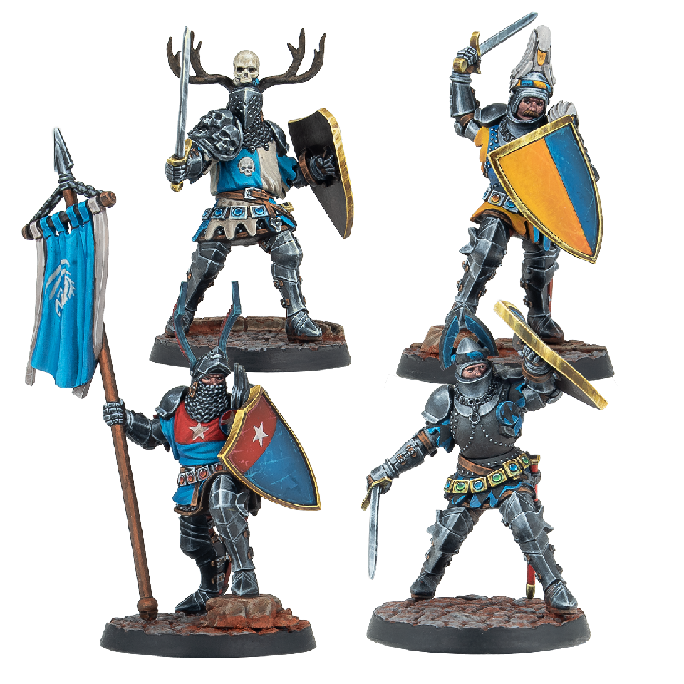 Los Caballeros de Feudom a Pie son una unidad de infantería Noble especializada en combate defensivo y consistencia táctica. Representan la columna vertebral de un ejército disciplinado, donde la fi abilidad y el control del combate priman sobre la movilidad o el daño explosivo.
