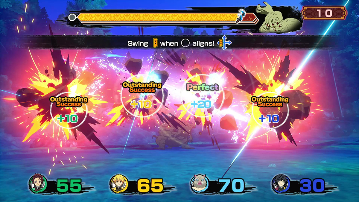 Elige entre un elenco querido por todos los fans, en el que se incluye a Tanjirō Kamado, Zenitsu Agatsuma, Inosuke Hashibira y 9 pilares, y juega en este emocionante multijugador para hasta 4 personas, en modo local o en línea. Nezuko Kamado también se unirá a la fiesta como personaje de apoyo. Enfréntate a una gran variedad de emocionantes minijuegos, reúnete con personajes conocidos, colabora con los demás para derrotar a peligrosos demonios que acechan en la noche y ¡conviértete en el matademonios más poderoso de todos!