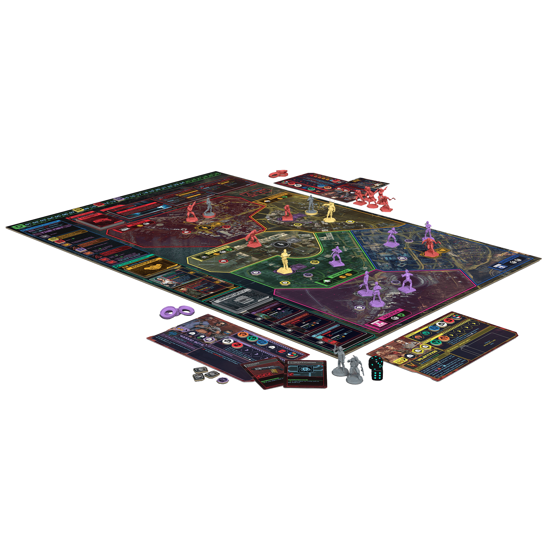 Cyberpunk 2077: Gangs of Night City se trata de un juego de mesa estratégico de miniaturas en el que las pandillas de Night City luchan por el control de la ciudad, siendo esta misma un personaje vivo del juego que irá evolucionando a medida que se desarrolle la partida.