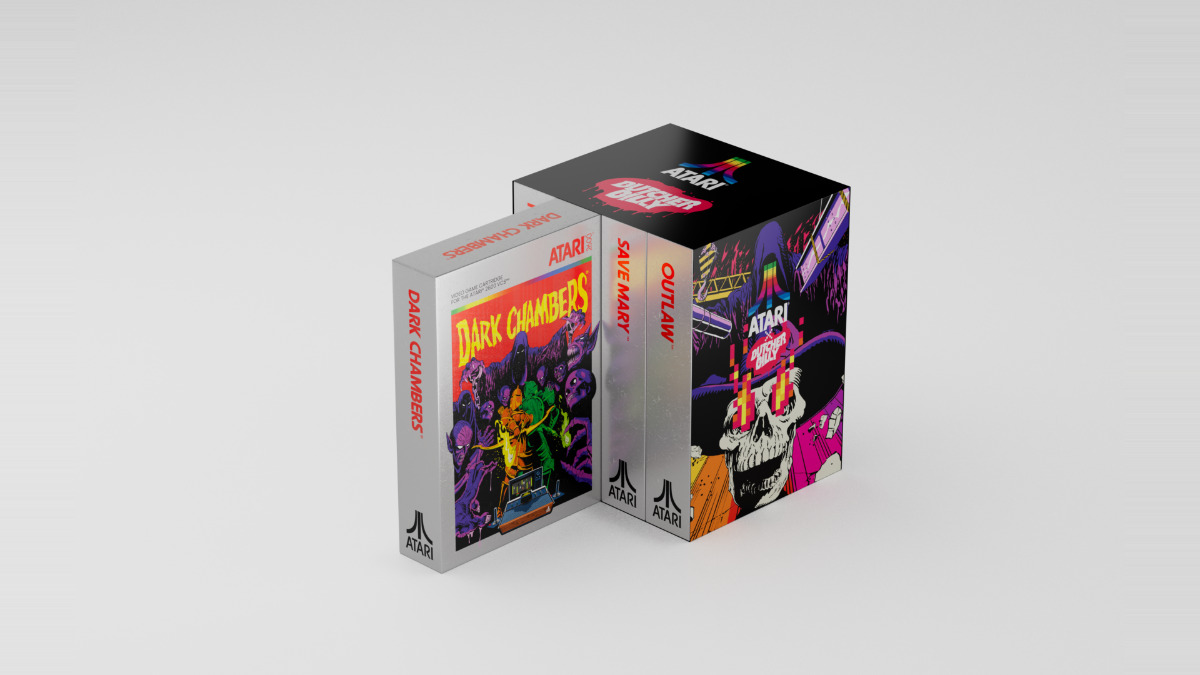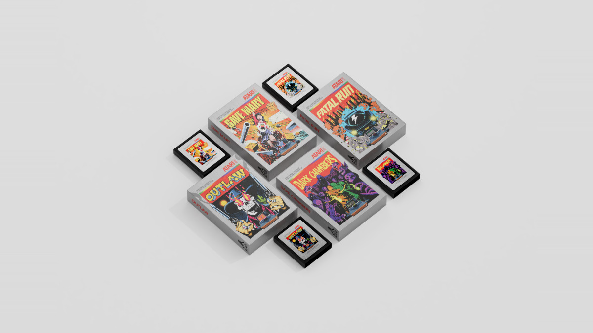 Atari se complace en anunciar una colección de edición limitada de cuatro cartuchos Atari 2600 con la obra de arte del renombrado artista de la cultura pop y colaborador de Atari, Butcher Billy. La colección de juegos de Atari 2600, que incluye Dark Chambers, Outlaw, Save Mary y Fatal Run, está envuelta en una funda diseñada por Butcher Billy y presenta una nueva ilustración que se inspira en el arte clave de los cuatro títulos. Para la colección, Butcher Billy ha reinterpretado el arte clave de cada juego en su propio estilo único.