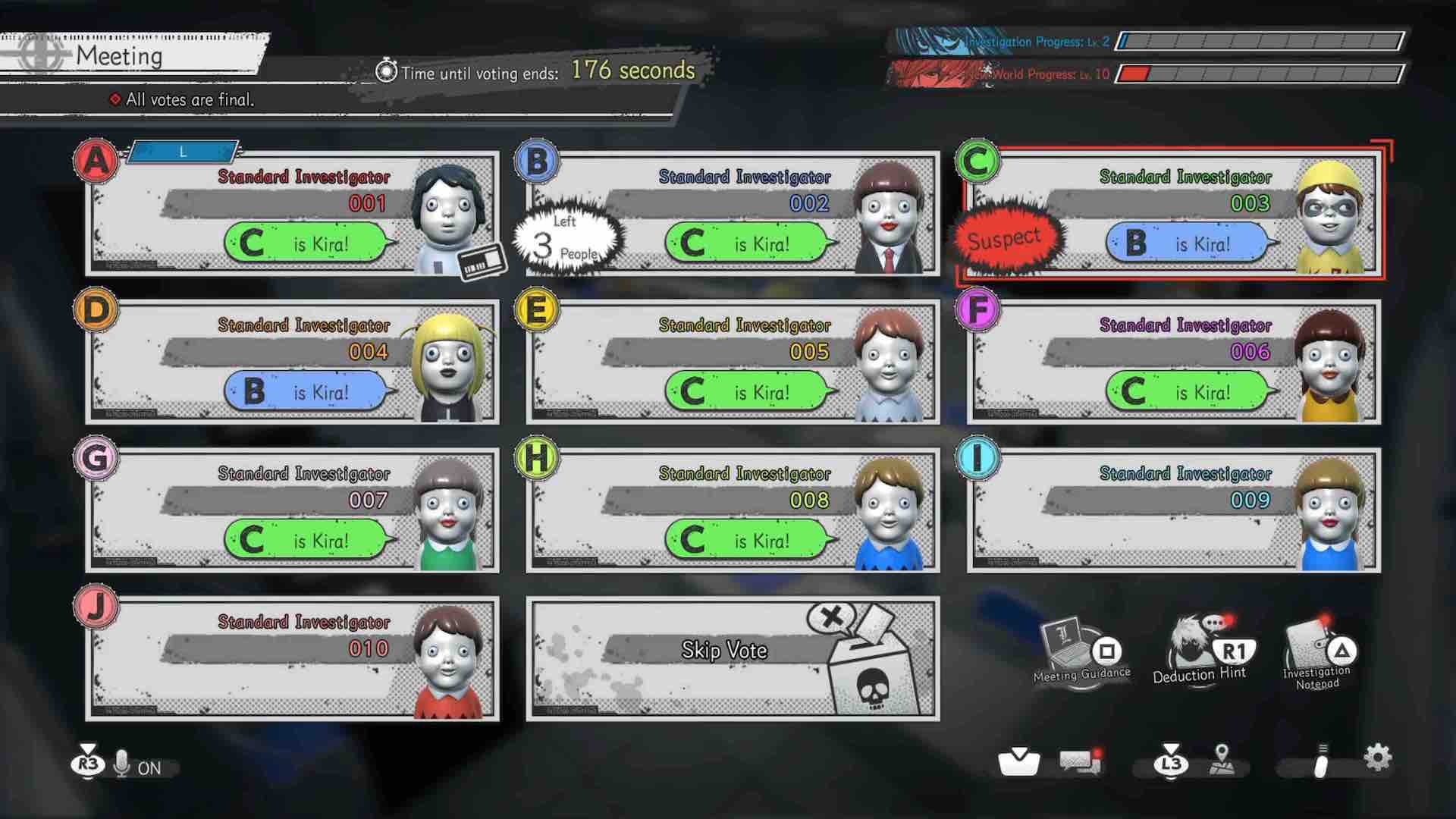 En DEATH NOTE Killer Within, los jugadores pueden asumir uno de cuatro roles: Kira, Seguidor de Kira, L o Investigador, cada uno con características de juego únicas. Cada rol asignado permite desarrollar una variedad de estrategias mientras los escenarios aleatorios evolucionan.