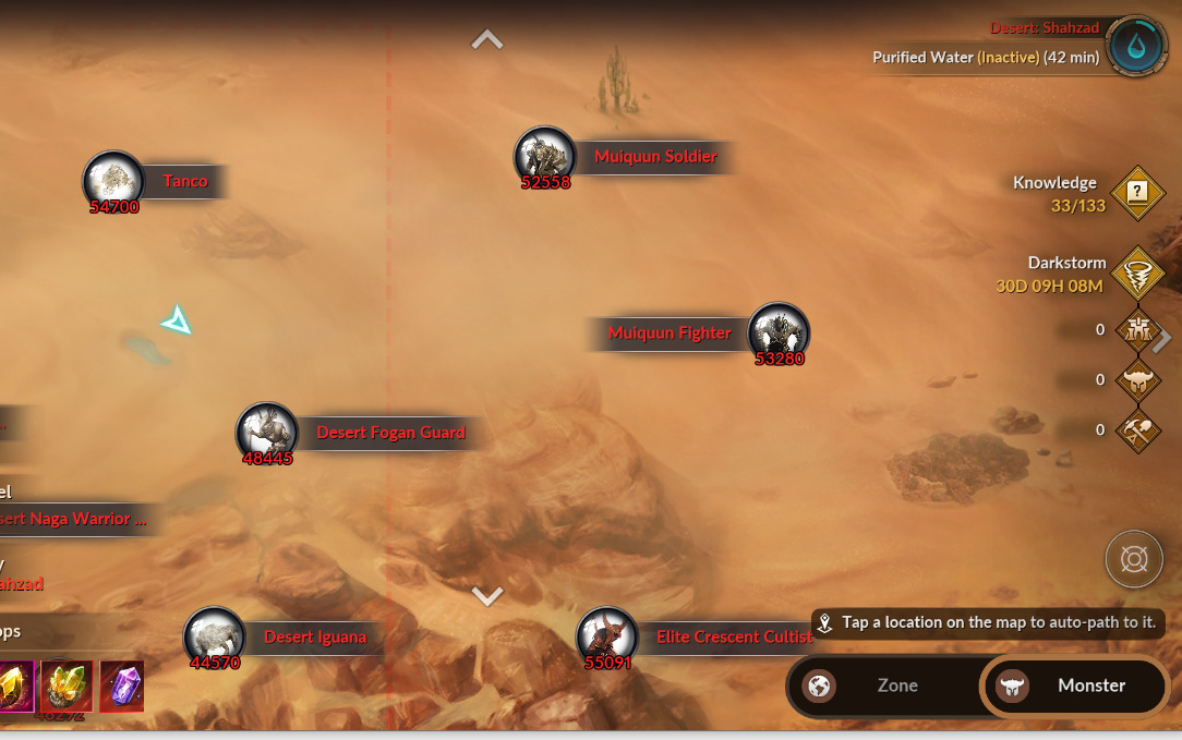 Ahora, además del nivel fácil (Imur) y el nivel intermedio (Torme), los jugadores de más nivel podrán experimentar Sahazad, que les permitirá luchar con otros Aventureros contra monstruos más duros y difíciles de eliminar, pero que también les aportarán mejores recompensas. Los jugadores también podrán obtener objetos raros si se topan con un mercader errante o con los cofres del tesoro que están enterrados por todo el Desierto.