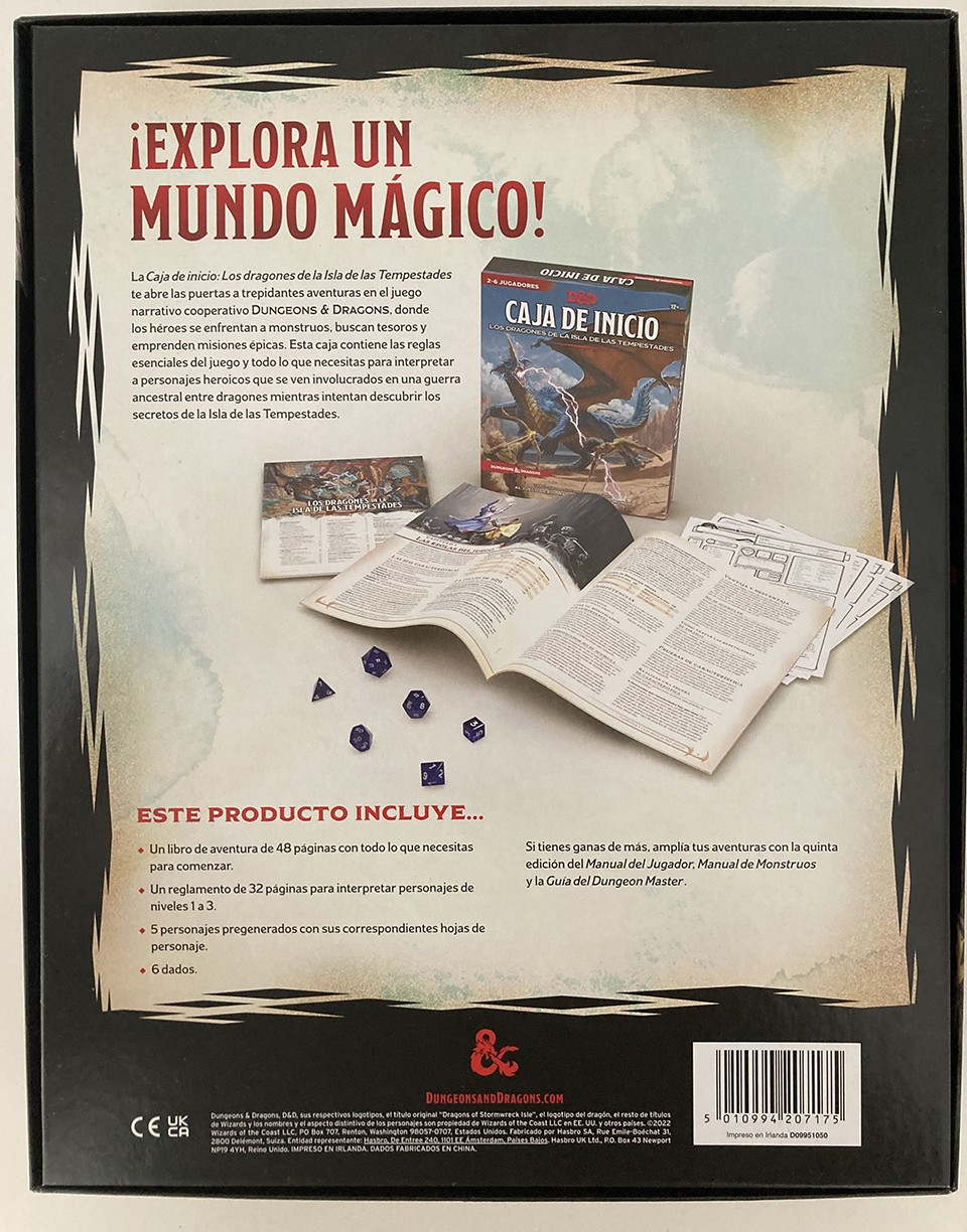 La Caja de Inicio de Dungeons & Dragons: Los dragones de la Isla de las Tempestades se trata de uno de los packs de inicio más simples de D&D, una forma de descubrir su universo de una manera económica con contenido para varias horas de juego junto a tus amigos. Sin embargo, puede que para los jugadores que ya conozcan este mundo sea demasiado básico, recomendando otros productos más completos para jugadores más avanzados, como los kits esenciales, el siguiente paso a este material, o los completísimos manuales avanzados.