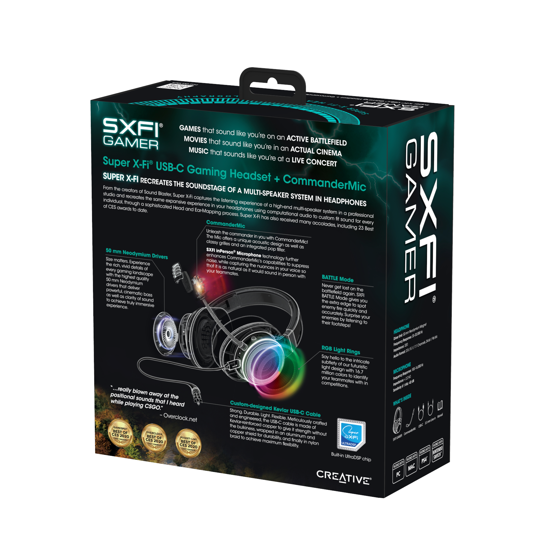 El SXFI GAMER, además, eleva el nivel con su cable de kevlar integrado, diseñado para mejorar su resistencia y durabilidad, así como para garantizar una alta velocidad en la transferencia de datos, asegurando el mejor rendimiento para gamers. Las nuevas luces RPG en las copas permitirá a los jugadores personalizar sus sesiones de juego con hasta 16,7 millones de colores.
