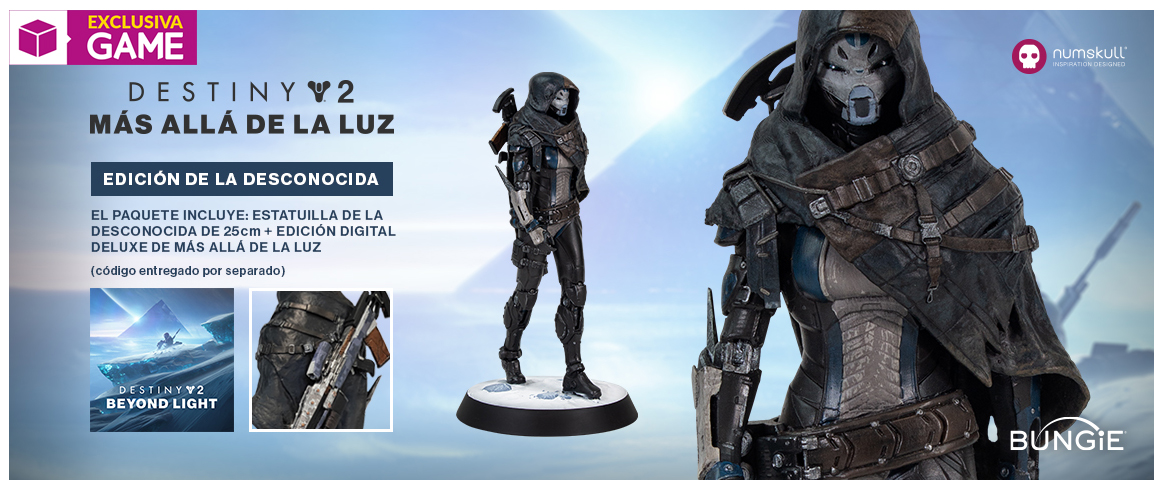 No te quedes sin tu STRANGER’S EDITION de DESTINY 2: BEYOND LIGHT y reserva ya el juego de forma Exclusiva GAME para disfrutar de todo su contenido adicional y espectacular figura de LA DESCONOCIDA, ¡a la venta el próximo 22 de septiembre!
