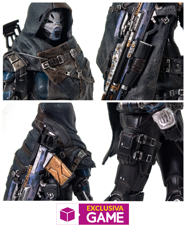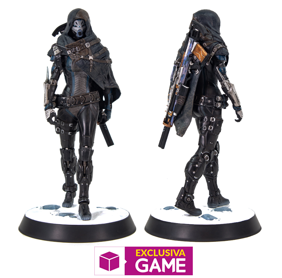 - Figura exclusiva de LA DESCONOCIDA, elaborada con materiales de alta calidad, equipada con su rifle de pulsos y de 25CM de altura.