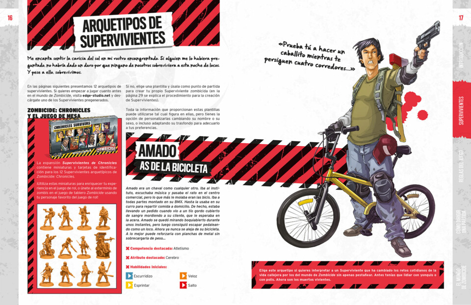 En Zombicide: Chronicles los jugadores asumen el papel de uno de estos excepcionales supervivientes, un puñado de individuos dotados de aptitudes extraordinarias que les han permitido salir airosos de todas las situaciones que han tenido que afrontar.