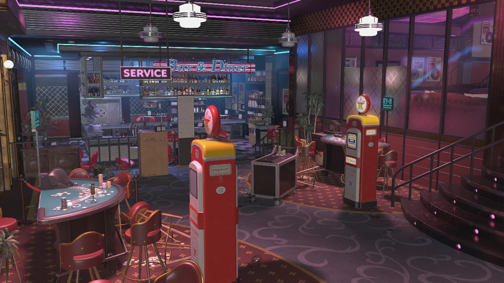 • Casino: una instalación de entretenimiento para los que buscan emociones… y los Cerebros más pérfidos. Sus máquinas tragaperras y chips todavía en funcionamiento están diseminados por el suelo a modo de macabro recuerdo de los que huyeron apresuradamente y lo dejaron desierto durante el colapso de Raccoon City.