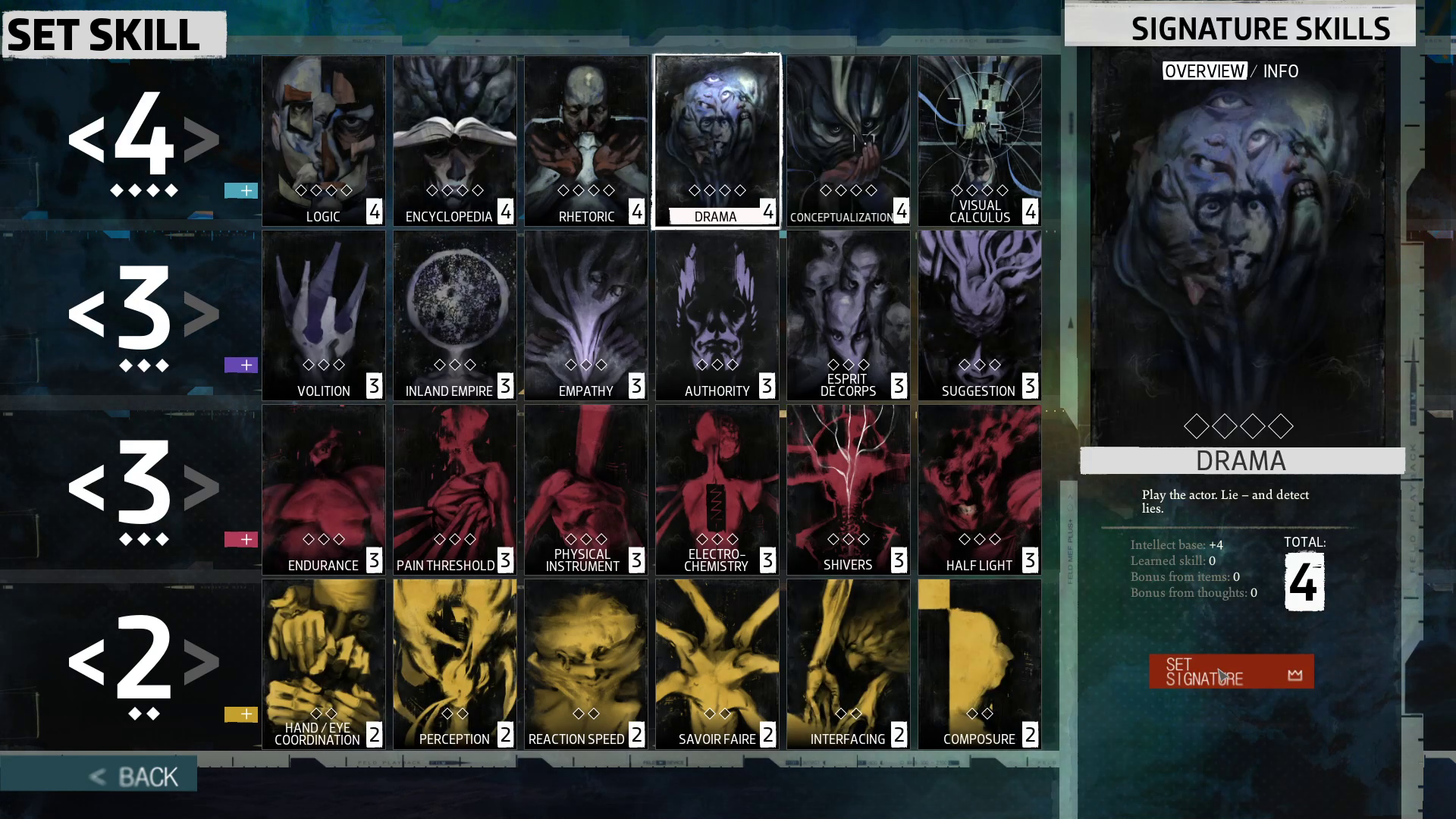 Los distintos diálogos del juego superan el millón de palabras. Esto ofrece una rejugabilidad exquisita a la obra, pues puedes subir de nivel distintas habilidades y obtener así líneas de texto completamente nuevas, que te ayudarán a comprender mejor otras perspectivas de la historia.