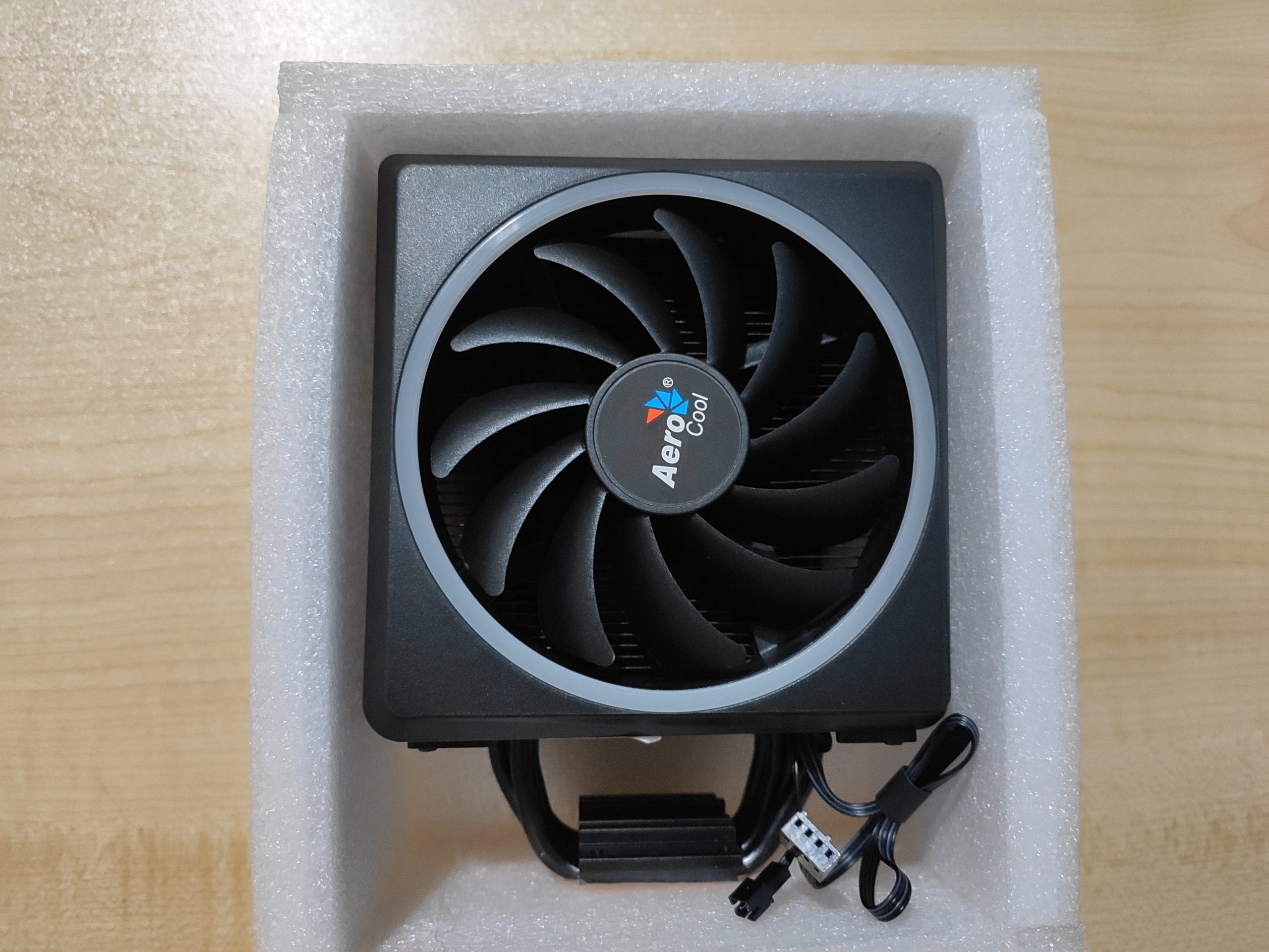 Luego en una caja con protección extra encontramos directamente el disipador con su ventilador montado. Aviso que las dimensiones del disipador son 126,5 x 76 x 160 mm, por lo que tenéis que tener en cuenta la cercanía de componentes como la memoria y la tapa lateral. En mi caso me impide el montaje de un ventilador lateral superior, que no es importante, pero ahí está.