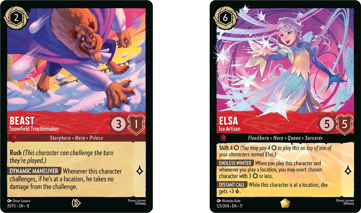 Es un placer para Ravensburger anunciar que las dos preciosas cartas icónicas de Winterspell, Moana – Curious Explorer y Pocahontas – Peacekeeper, tendrán un estilo de «recortes de papel», similar a las decoraciones de copos de nieve de papel. Las cartas encantadas de Winterspell siguen un motivo similar y cuentan con un efecto foil escarchado, permitiendo a los coleccionistas compartir la diversión de jugar con estas cartas preciosas y únicas.