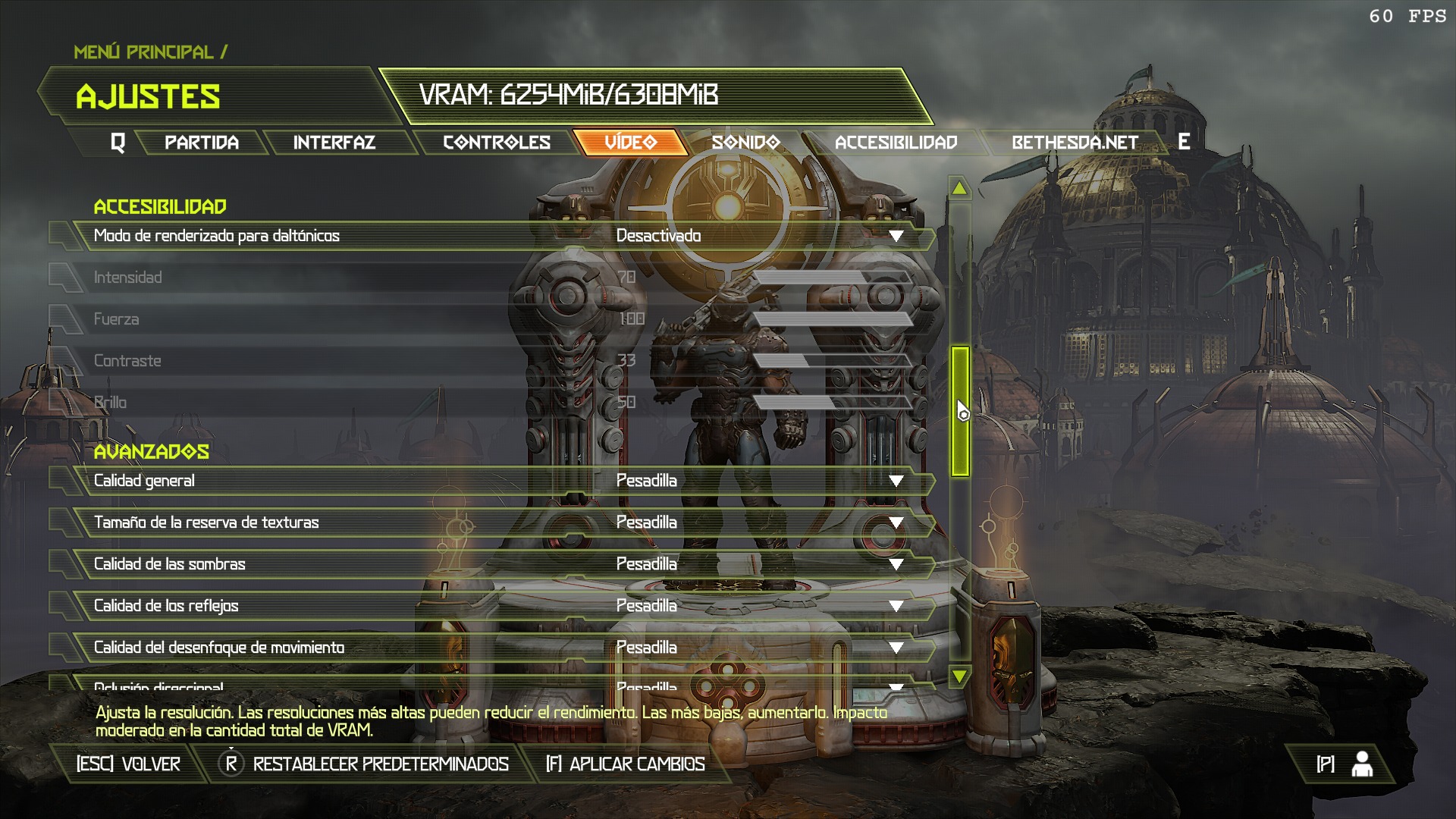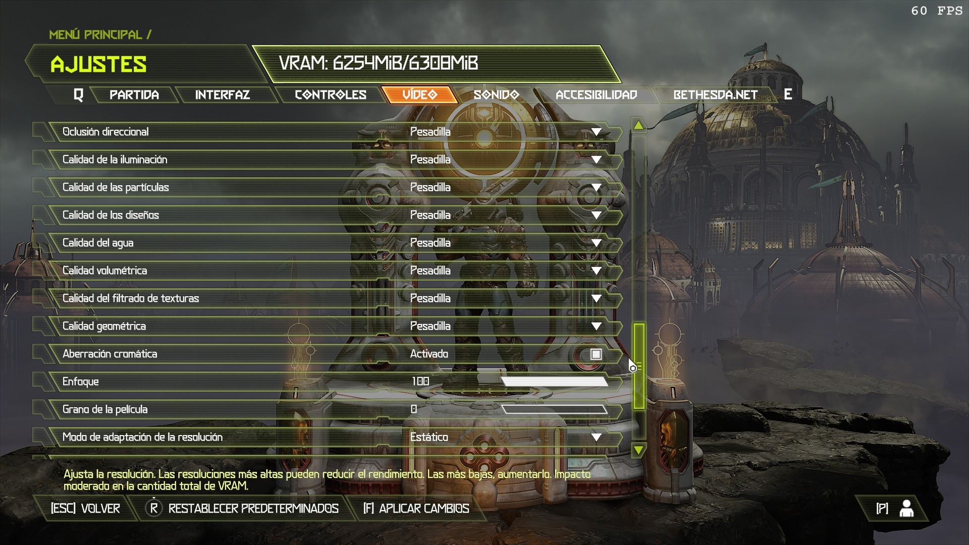 Comenzando por que el título tiene una increíble cantidad de ajustes gráficos, debo destacar que en general he jugado a resolución 1080p@60fps con el preajuste de pesadilla, con caídas en momentos muy puntuales, pero de no más de 5 o 10 fps. Mientras que el título en resoluciones 2k ya me ha dado algún problema para mantener los 60 fps estables, incluso en resoluciones bajas, estando siempre entre 45-60 fps. Por otra parte, intentar jugar a 4k con mi equipo resulta imposible a 60 FPS, aunque en calidad baja se mantiene bien entre 25.30 fps de media (Nvidia manda refuerzos).