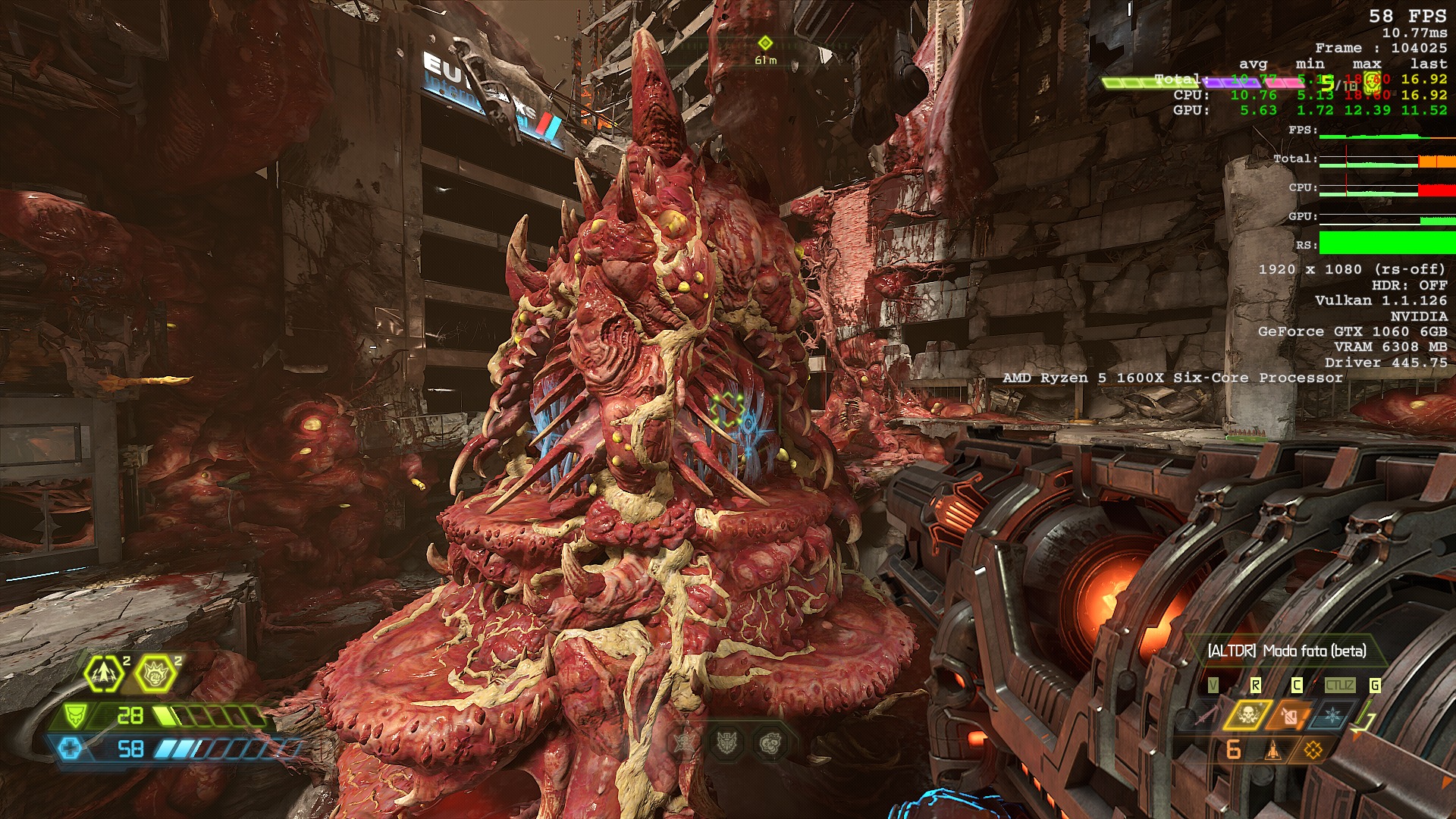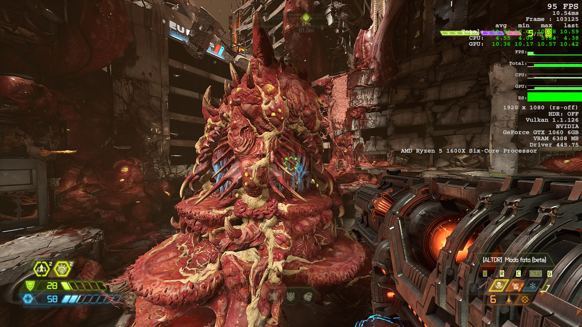 Y ahora hablemos del rendimiento del título en PC, algo en lo que siempre ha destacado id Software. Con Doom (2016) ya pudimos ver la bestia que se traían entre manos hablando de rendimiento, y Doom Eternal es exactamente igual. El equipo en el que se ha jugado el título es: