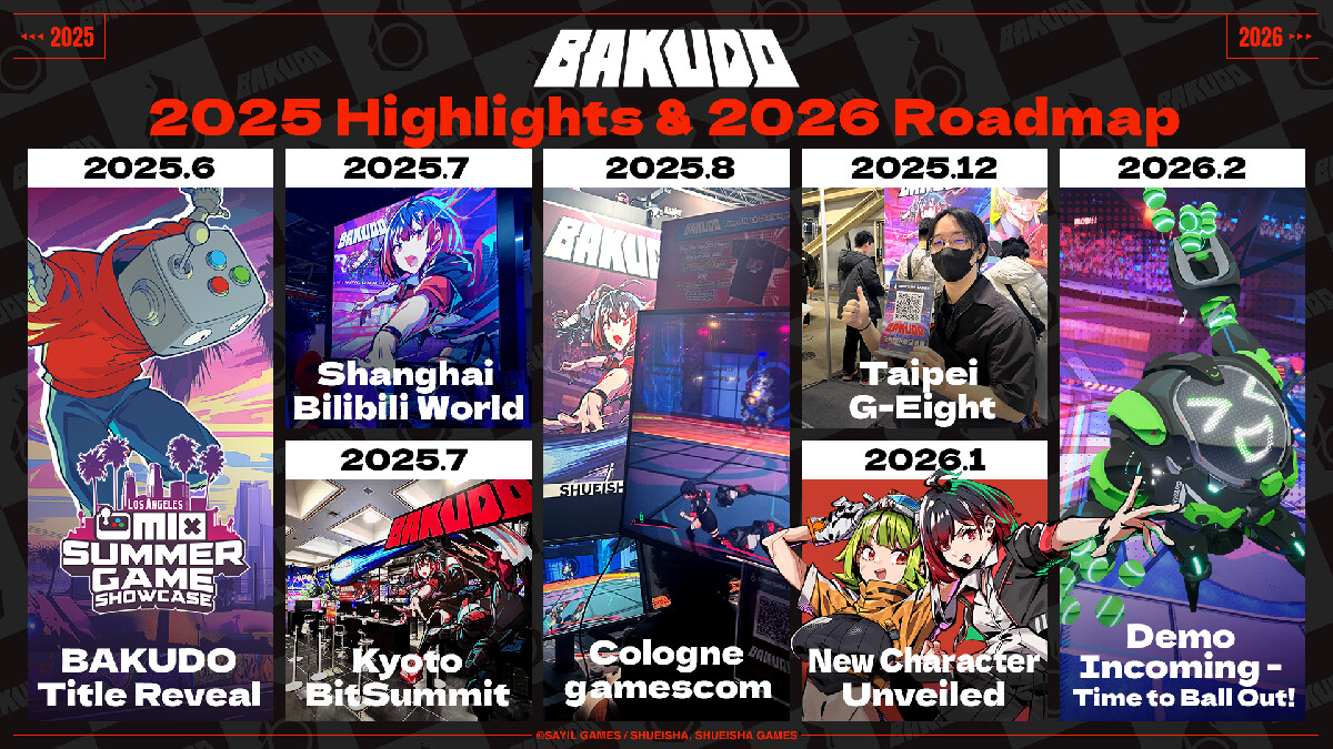 En 2025, BAKUDO experimentó un crecimiento significativo, con Shueisha Games anunciada como la editora global del juego. Su tráiler de debut en The Mix Summer Showcase ha superado las 550.000 visualizaciones, y su demo fue presentado en eventos como Bilibili World, BitSummit, Gamescom y G-EIGHT, recibiendo respuestas entusiastas de los jugadores gracias a la combinación única del juego de deportes competitivos con pelota y una jugabilidad de acción de alto ritmo.