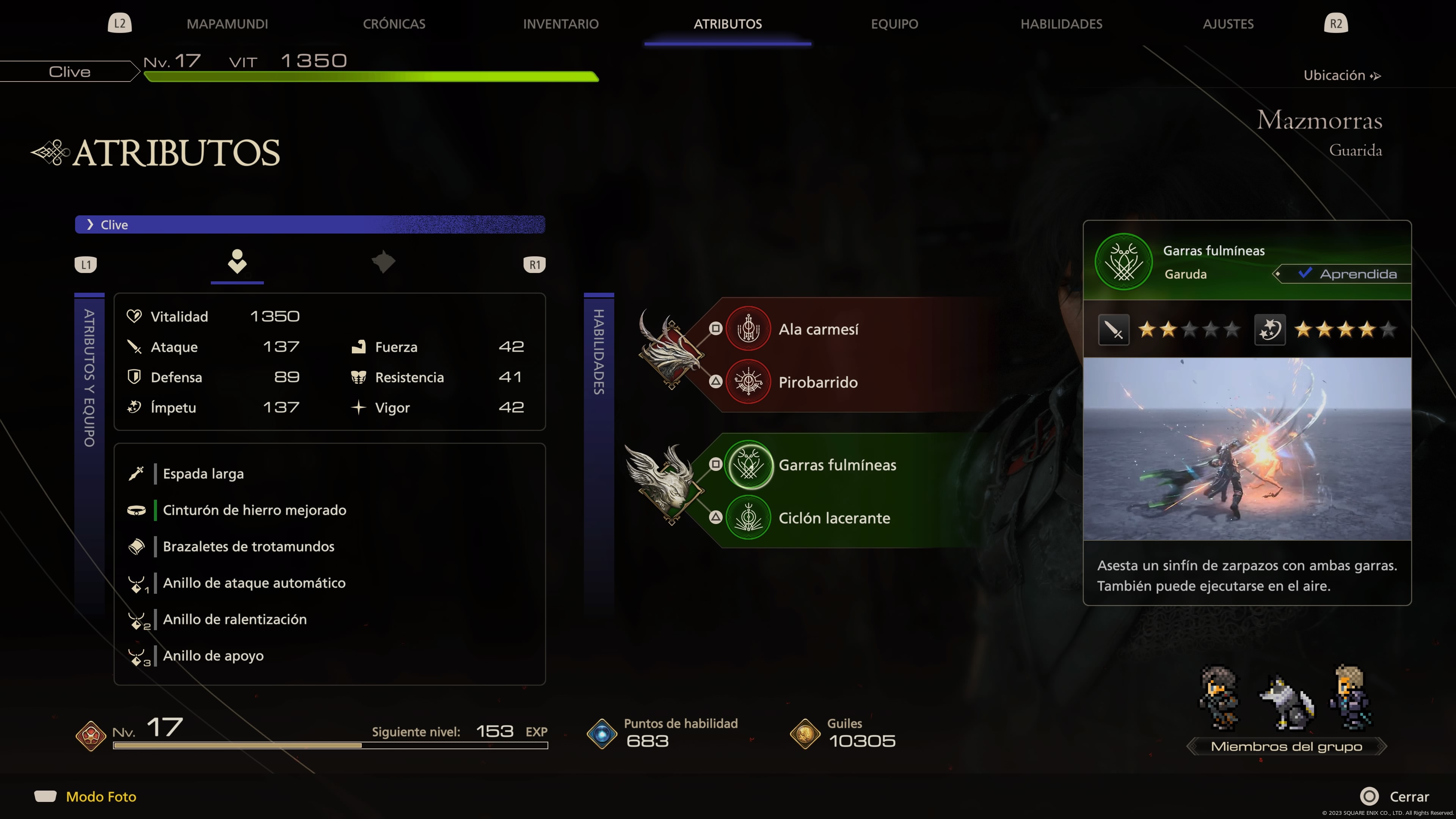 Algo que me ha emocionado es que cuenta con el modo Nueva Partida +, tan necesario como divertido, ya que nos permite dar una segunda vuelta elevando el reto. Algo que últimamente los juegos de alto perfil suelen lanzar meses después. Por lo que es de valorarse que Final Fantasy XVI lo traiga de lanzamiento.