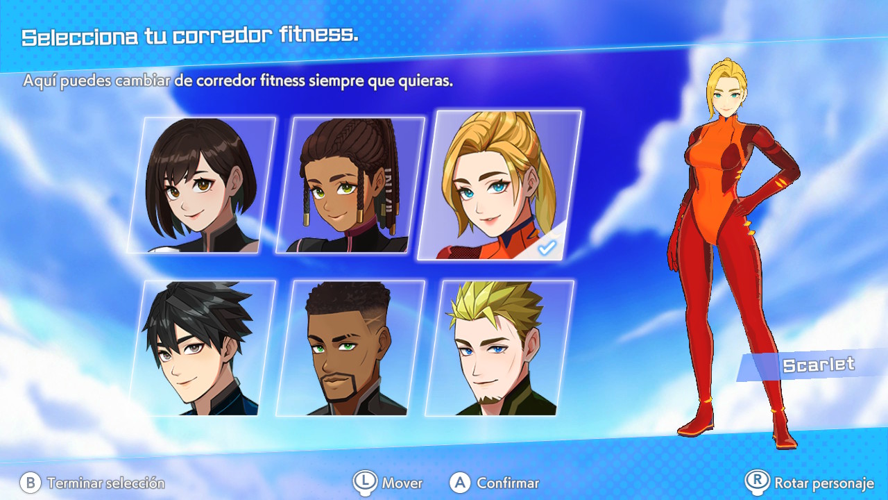 De entre los corredores disponibles están: tres femeninos y tres masculinos, con diseños variados. El corredor que elijamos tendrá sus propias tareas en paralelo, por lo que la energía que generemos realizando los ejercicios será su impulso para completarlas.