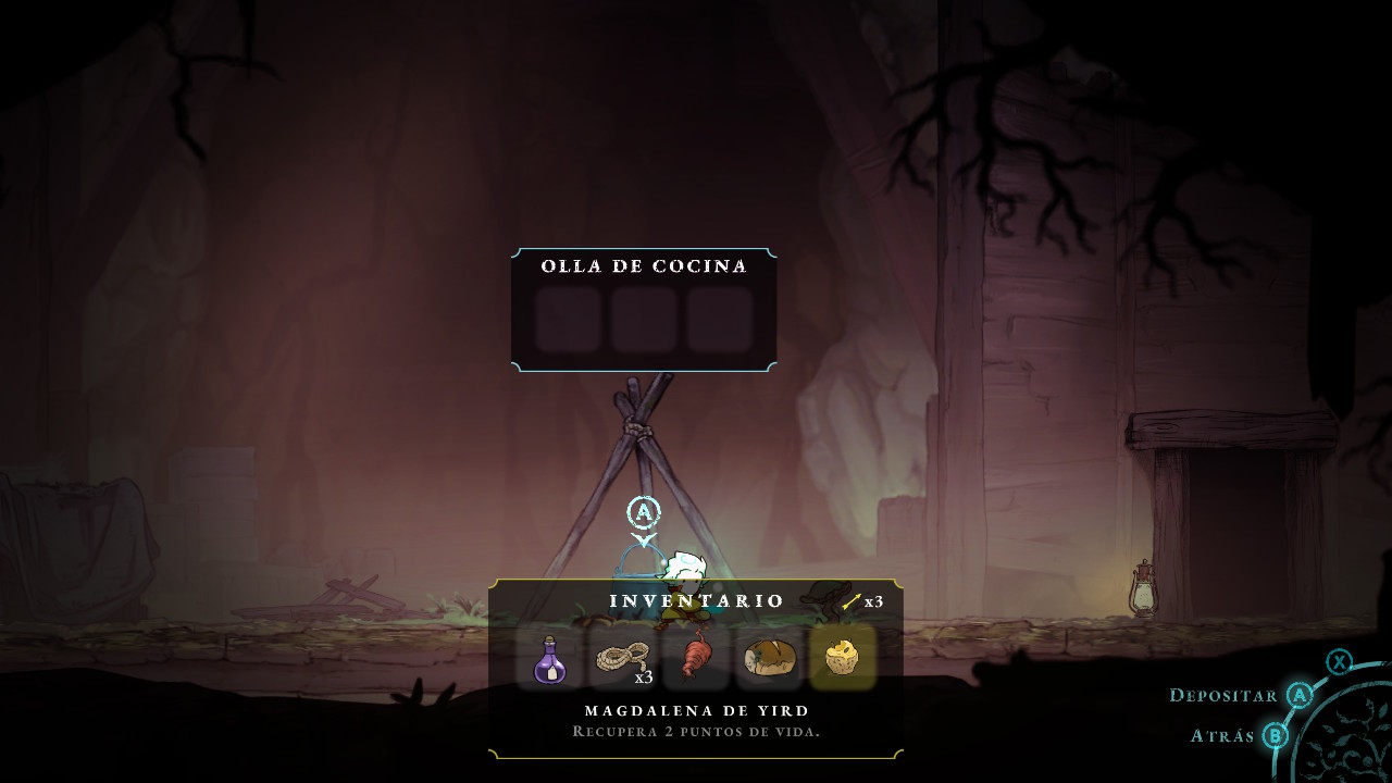 Podremos cocinar para crear ítems que nos recuperen mayor puntos de vida, el título nos obliga a aprender a administrar nuestro espacio limitado, cada personaje tiene su propio inventario. Los ítems clave ocupan espacio útil, por fortuna, podremos abandonar ítems y recogerlos después, mas, se vuelve indispensable la ponderación.