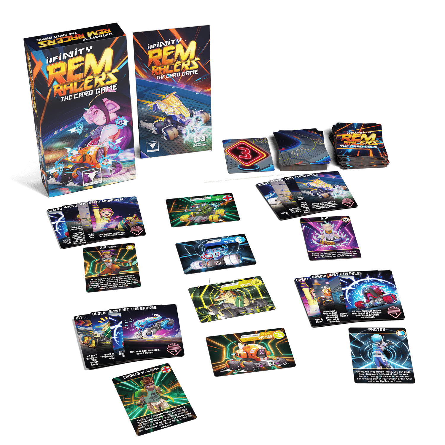 Cada caja de Infinity REM Racers the card game contiene: