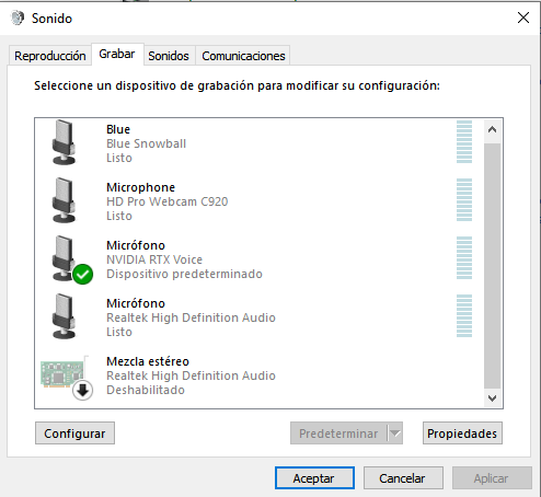 Para usar el micrófono siempre con esta tecnología, tenéis que aseguraros de que se está usando el nuevo dispositivo añadido por Nvidia, tanto para entrada de audio como de salida. En caso de que tengáis algún problema durante su instalación podéis visitar su propia guía de configuración.