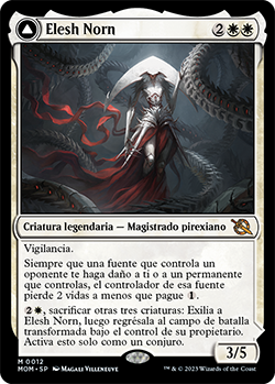 Elesh Norn, Madre de las Máquinas y líder del ejército pirexiano, ha reunido una fuerza capaz de dominar todo el Multiverso. Ahora, expande su alcance para llevar la gloria de Nueva Pirexia a otros planos en un intento de someter a todos los seres.