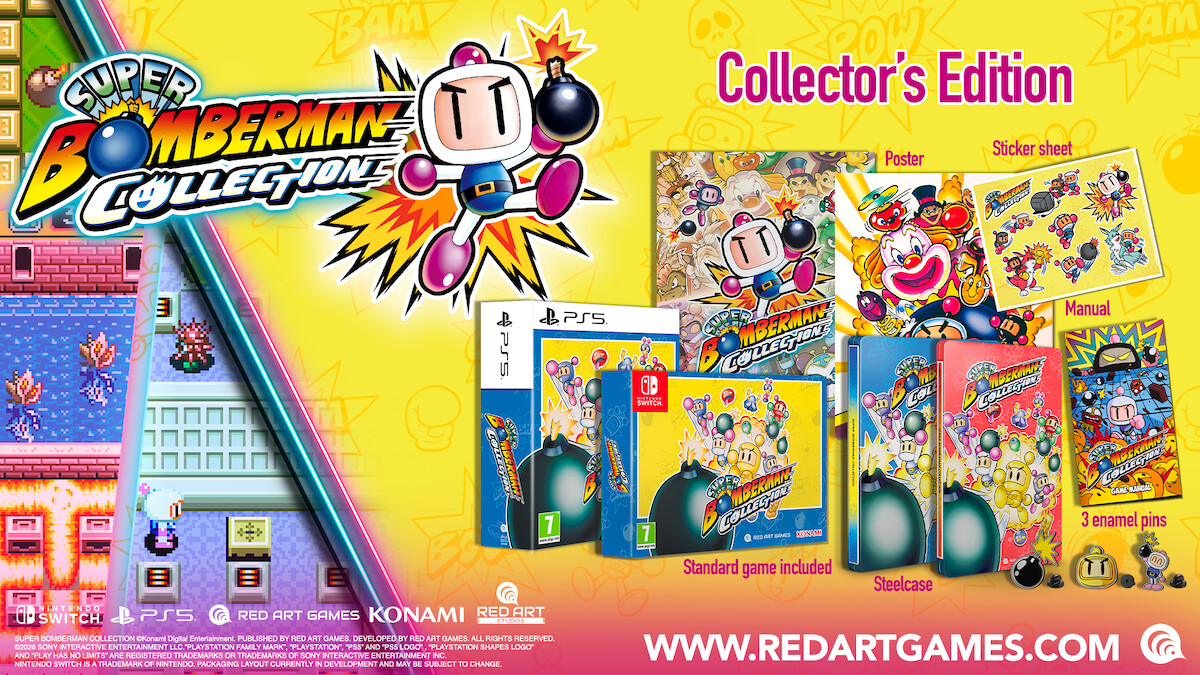 KONAMI ha anunciado que las versiones digitales de SUPER BOMBERMAN COLLECTION ya están disponibles para PlayStation 5, Xbox Series X|S, Steam , Nintendo Switch 2 y Nintendo Switch. Las reservas de copias físicas del icónico party también comienzan hoy y se lanzarán el 28 de agosto.