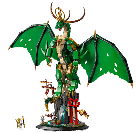 Un majestuoso dragón con alas articuladas, escamas móviles y una espada mágica flotante. Ideal para jugar o exhibir, este set del universo NINJAGO inspira aventuras épicas llenas de fantasía.