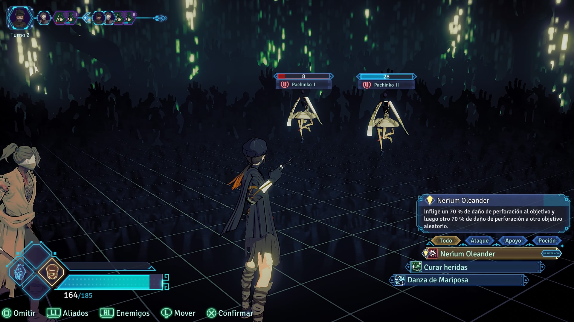 En su segunda capa, somos arrojados en el clásico juego RPG por turnos en el que estaremos al mando de cuatro personajes a la vez, todos y cada uno de ellos con un rol específico en relación a sus habilidades. Aquí será necesario levelear a nuestro grupo, dada a la dificultad en ascenso con el progreso de la narrativa.