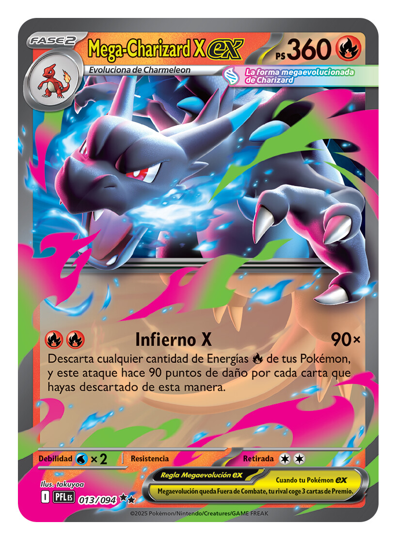 La nueva expansión de la serie Megaevolución prende la mecha de un ardiente elenco de Pokémon de tipo Fuego y de tipo Oscuro, como los poderosos Mega-Charizard X ex y Mega-Gengar ex, que llegan con unos niveles de PS y daño de ataque más altos que el resto de Pokémon ex. Estas formidables cartas de Pokémon ex Megaevolución introducen una explosiva energía y alucinantes estrategias en JCC Pokémon.