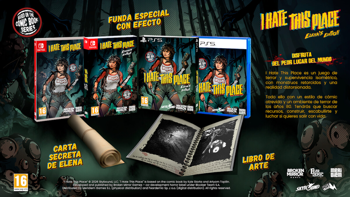 Meridiem se complace en anunciar que publicará una edición física de I Hate This Place, un juego de terror y supervivencia isométrico, repleto de monstruos retorcidos y realidades distorsionadas, todo ello envuelto en un atrevido estilo artístico de cómic y rebosante de un ambiente de terror de los años 80. Desarrollado por Rock Square Thunder y publicado digitalmente por Broken Mirror Games y Feardemic, en colaboración con Skybound Entertainment, I Hate This Place llegará en formato físico para PlayStation 5 y Nintendo Switch el 9 de abril de 2026.