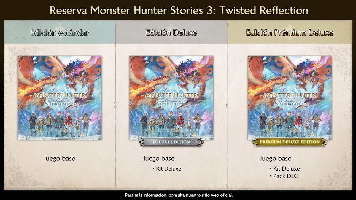 Los jugadores que reserven el juego recibirán una Armadura Superpuesta especial para Eleanor, la Reina Cornazul, un nuevo y llamativo atuendo cosmético que se puede equipar con la opción Cambiar ropa de compañero una vez que se desbloquee en el juego. Además de la Edición Estándar de Monster Hunter Stories 3: Twisted Reflection, aquellos que buscan mejorar la experiencia pueden reservar la Edición Deluxe o la Edición Premium Deluxe.