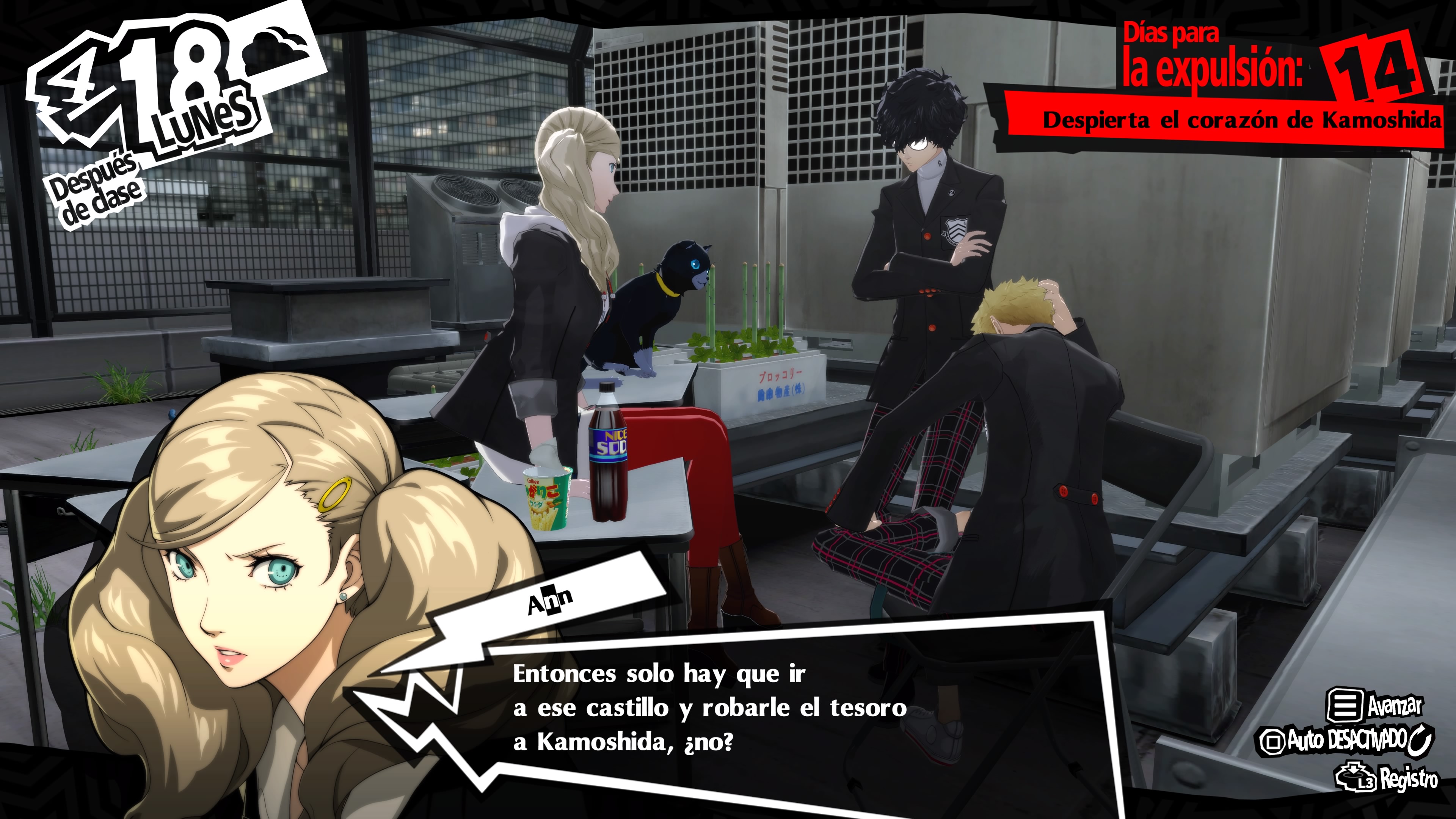 Los saltos en el tiempo están muy bien pensados y ayudan a avanzar la trama, asimismo para mostrarnos en lo que se convertirán los Ladrones Fantasma y el misterio que rodea a la trama. Nuestro protagonista es el más misterioso del grupo y callado, hablando solo lo necesario, su primer amigo en Tokio es Ryuji, un bocazas exestrella del equipo de atletismo escolar. Ann Takamaki es la más prudente del grupo y aspirante a modelo. Y Morgana, es nuestro guía en el Metaverso y el cómico del grupo.