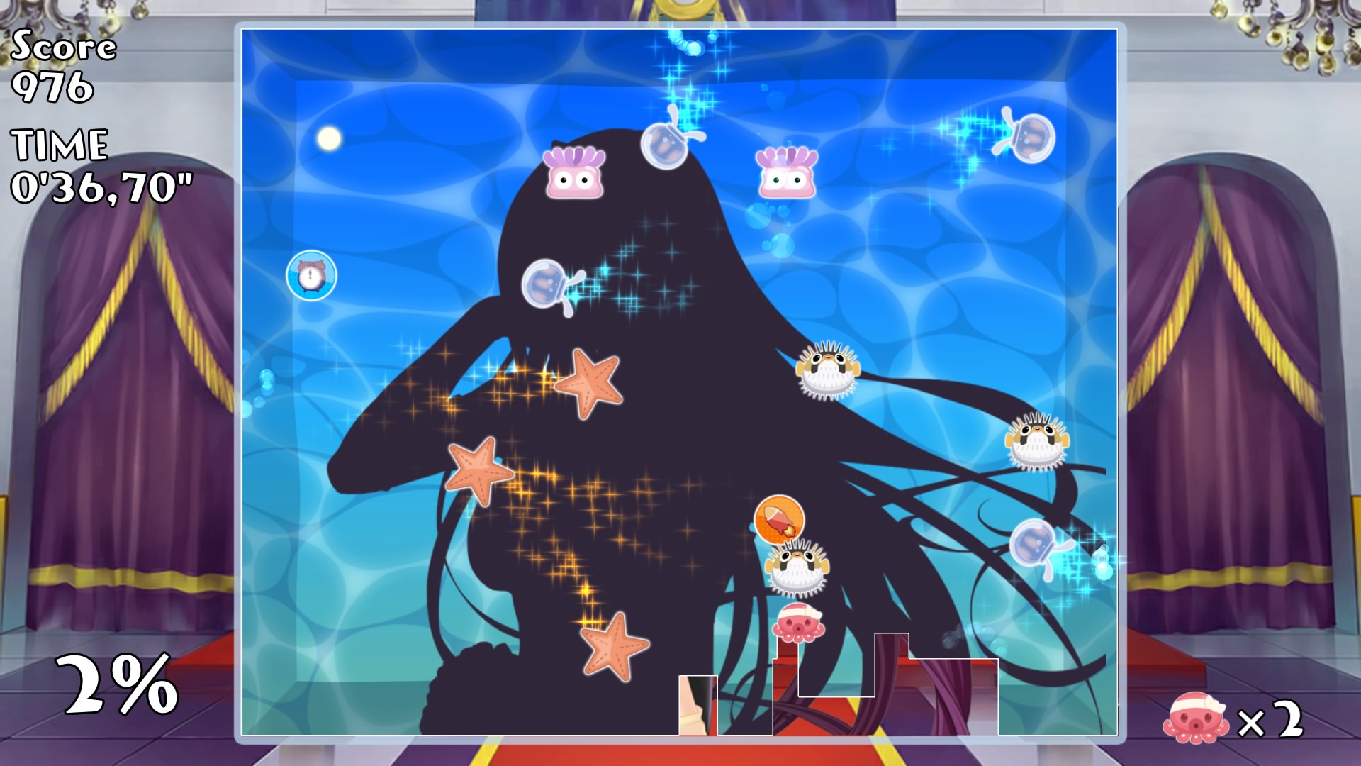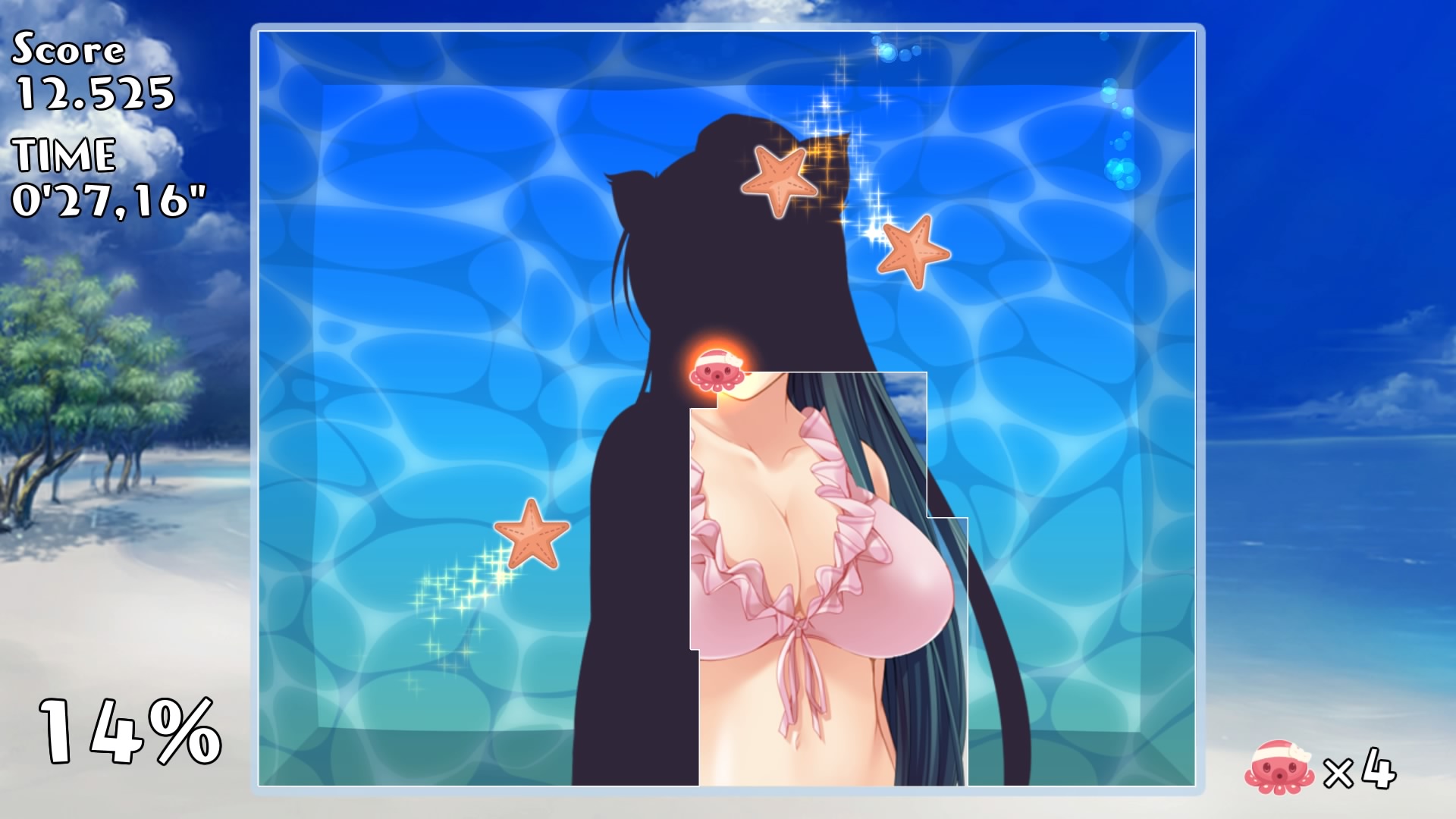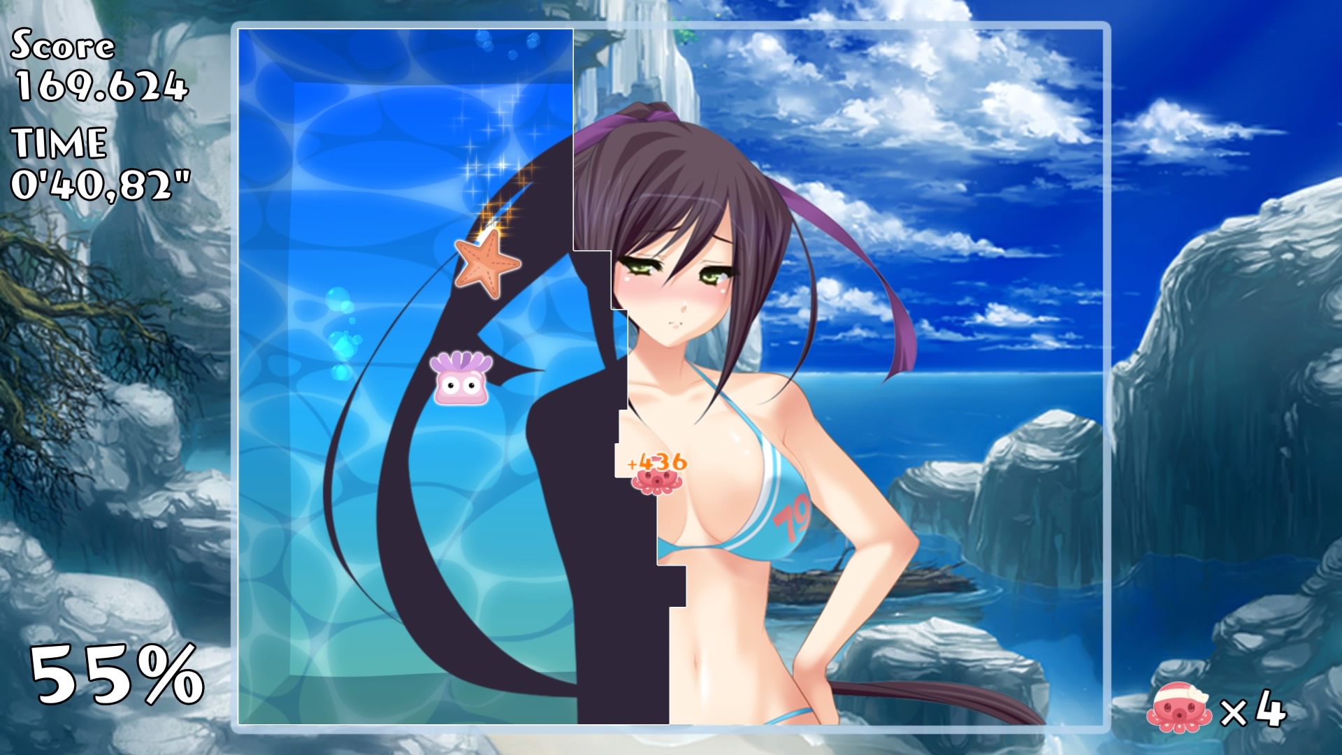 Estos seres marinos dejan una pantalla llena de agua para ocultar a las bellas waifus. Por lo que nuestro calamar deberá usar una herramienta especial para capturar secciones de la barrera y eliminarlas, exponiendo a la hermosa chica que nos espera al otro lado. Las chicas se irán desnudando gradualmente de un escenario a otro para recompensar nuestro éxito.