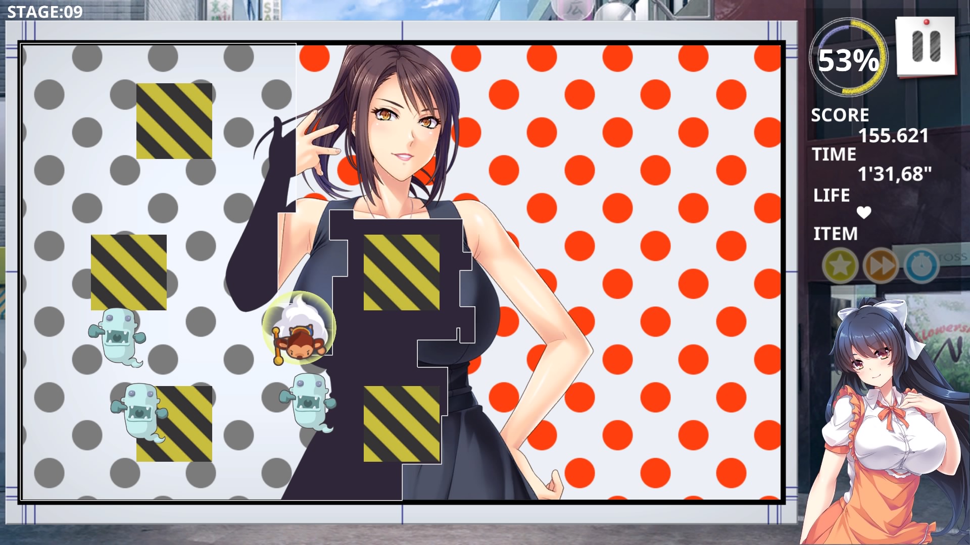 Lamentablemente por obvias restricciones que vivimos los juegos Qix tienen un enfoque coqueto sin ir más allá de esto con las chicas manga/anime, el propio juego destaca que estos personajes son de ficción y son mayores de 18 años, para evitar una mala percepción de un juego que solamente busca ofrecernos un rato divertido y sano.