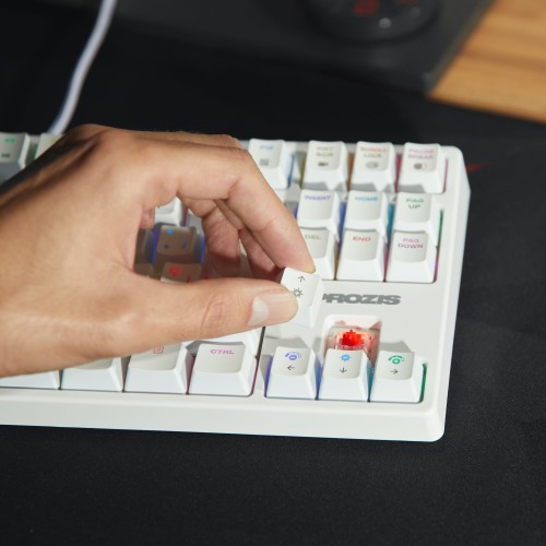 Entre sus características destacamos la selección de switches mecánicos rojos para una pulsación suave y menor ruido, una tasa de sondeo de 1000mhz, proporcionando una mayor velocidad de respuesta, luces RGB customizables y una construcción en base metálica envuelto y reforzado en una carcasa PBC.