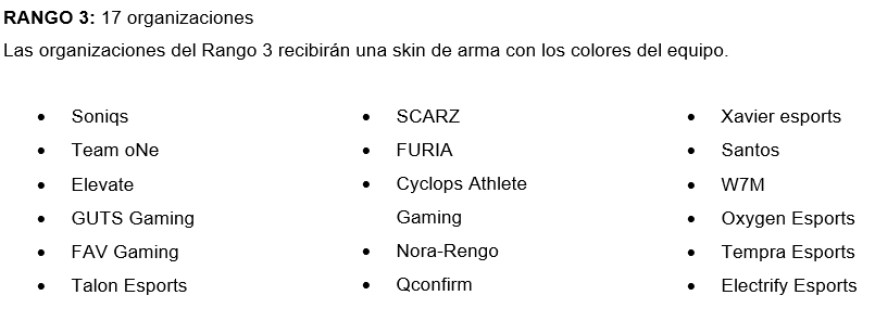 - Por cada conjunto de equipamiento de liga vendido, el 30 % del beneficio neto se dividirá en cuatro partes, entre las organizaciones del Rango 1, las del Rango 2, las del Rango 3 y una Bolsa de Rendimiento.