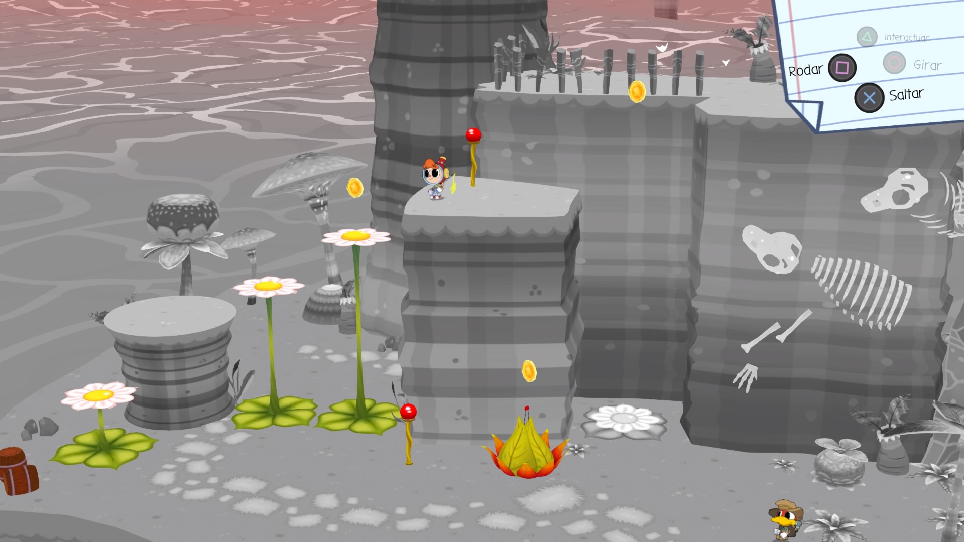 Cuando desembarquemos en las islas, Billy tendrá que resolver acertijos de entorno para poder avanzar, ya sea presionando un botón, accionando una palanca, por mencionar algunos. Al final del día todo se cohesiona de excelente manera. Rainbow Billy es una gema oculta que engancha gracias a su buen equilibrio en la dificultad, que en ningún momento se vuelve injusta o imposible.