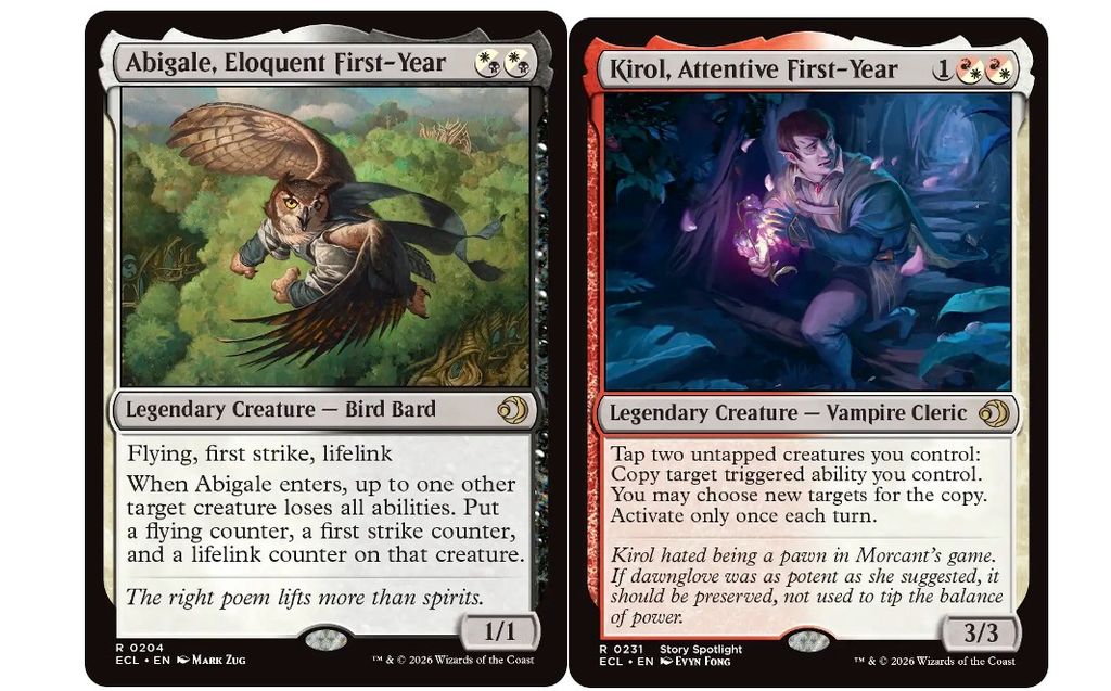Ahora, cuatro estudiantes de primer año de Strixhaven, Abigale, Kirol, Tam y Sanar, han atravesado accidentalmente un Omenpath y han acabado en este extraño nuevo mundo. Ajani y Liliana siguen su rastro mientras investigan su desaparición, al mismo tiempo que el conflicto entre Lorwyn y Páramo Sombrío se intensifica. Las fuerzas elementales chocan, surgen rostros conocidos y el destino del plano pende de un hilo.