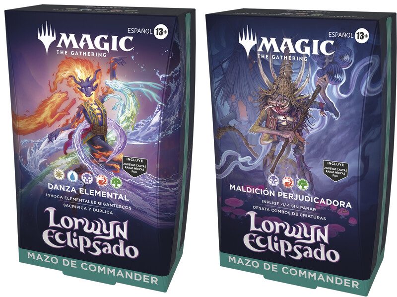 Cada uno de los mazos de Commander de Lorwyn Eclipsado incluye un comandante legendario vinculado a Lorwyn o a Páramo Sombrío, ofreciéndote una nueva forma de jugar al formato más popular de Magic: The Gathering. Lidera tus fuerzas con Cenizeida con el mazo Danza Elemental o Tía Ool con el mazo Maldición perjudicadora. Dos comandantes legendarios, dos caras de la dualidad de Lorwyn. Abraza el poder de la armonía o aprovecha el potencial de perjudicar en tu próxima noche de Commander.