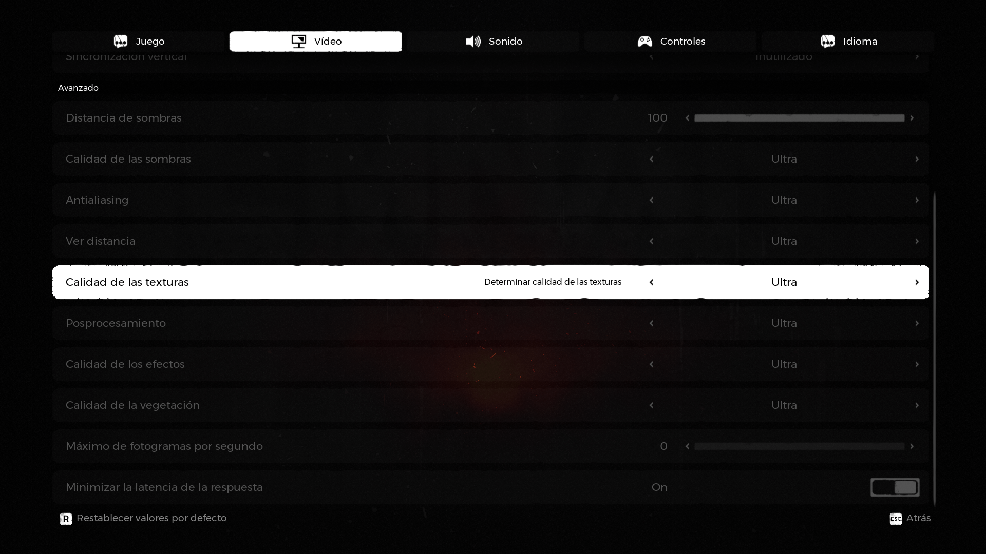 A continuación, os dejo unas imágenes con las opciones gráficas que nos permite modificar el juego y en breves pasamos a hablar de rendimiento en general.