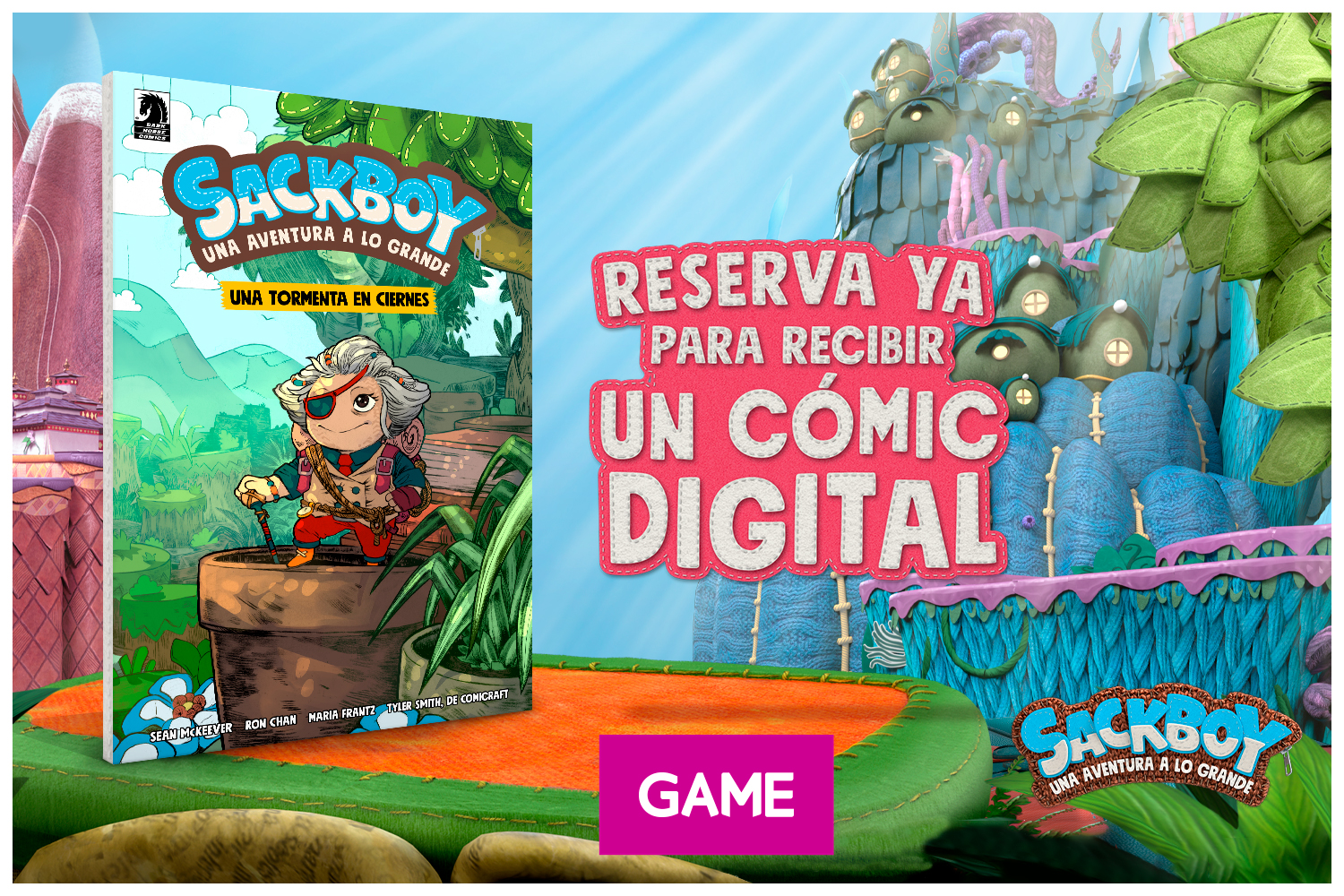 ¡Así que ya sabes! Reserva “SACKBOY: A BIG ADVENTURE!” en GAME y no te quedes sin tu protector para cargador de mando Exclusivo GAME y tu cómic digital de regalo, ¡a la venta el próximo 12 de noviembre!