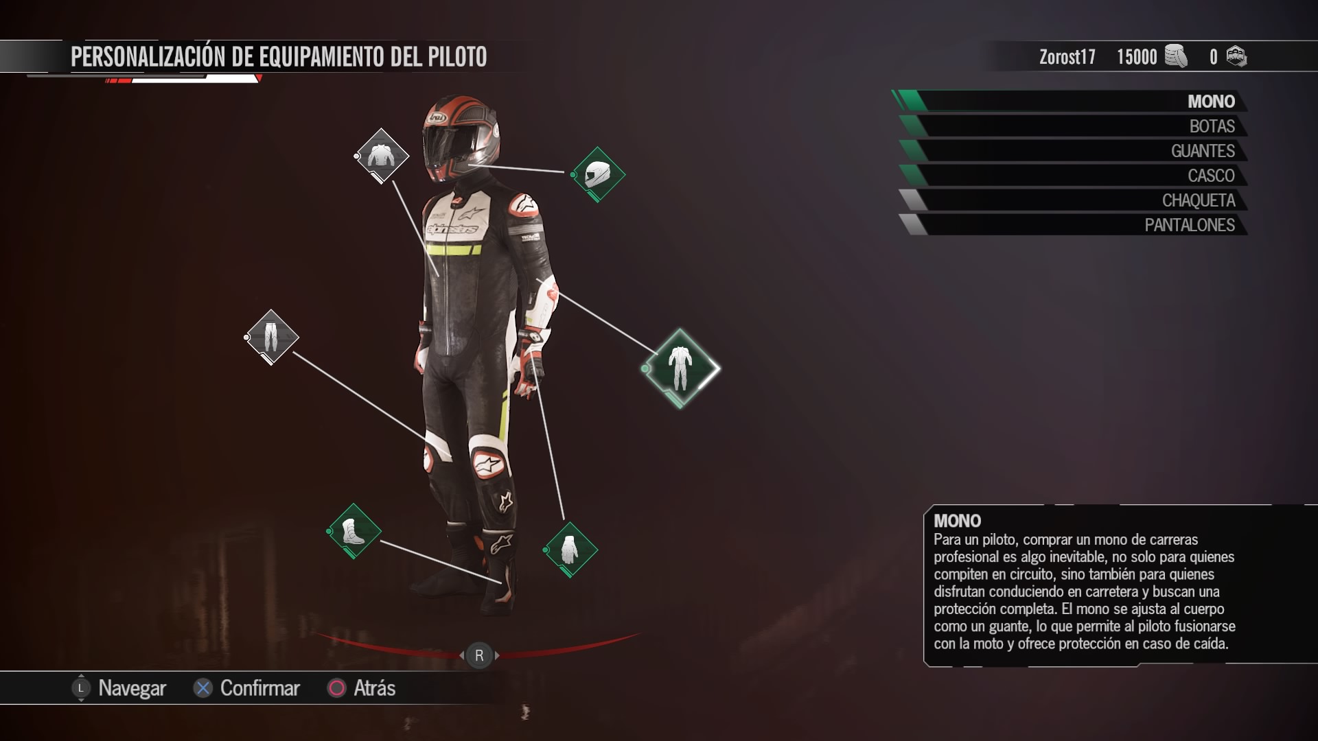 También tenemos una zona para nuestro piloto, donde podremos personalizarlo completamente: desde su apariencia física, nacionalidad y equipamiento hasta la posición que tomará al conducir, como el pie en el que se apoyará al salir y su postura al doblar una curva. En estas cosas es donde se nota que todo está muy cuidado al detalle.