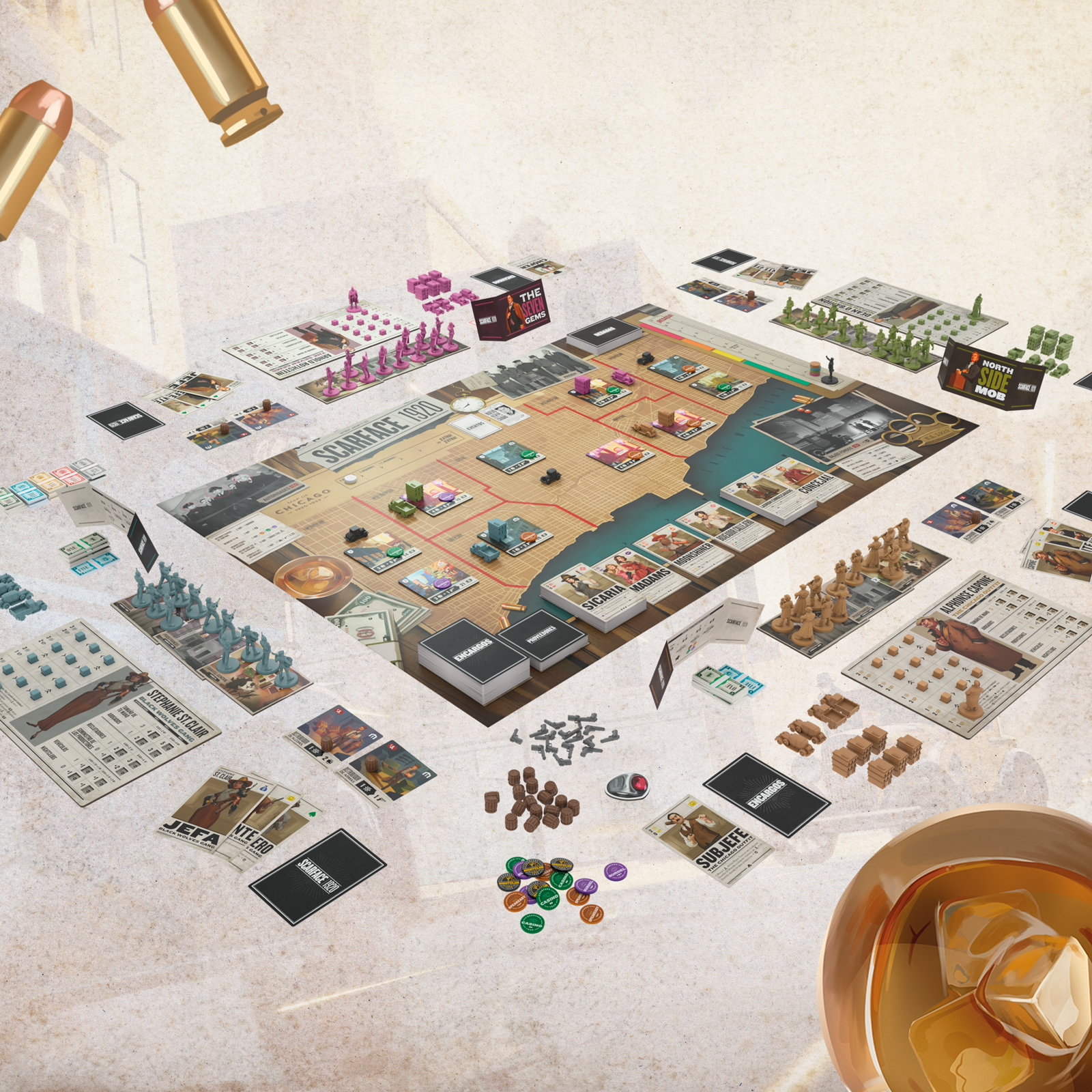 En primer lugar tenemos QE, un juego de subastas familiar, en el que tendremos que encarnar a naciones más grandes del mundo e intentar salvar su economía imprimiendo dinero para rescatar las empresas. Por otro lado tenemos Scarface 1920, un juego de construcción de mazos y colocación de trabajadores donde nos podremos al frente de una de las cuatro bandas mafiosas de la Chicago de 1920, compitiendo contra las demás bandas por el control de la ciudad. El tercero de los lanzamientos se trata de Don’t Wake Up Chtulhu, un divertido juego de cartas de temática festiva para jugar en familia