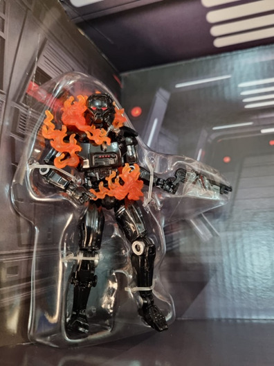 El set cuenta con las figuras a escala de Moff Gideon, el minúsculo Grogu, The Mandalorian y un Dark Trooper todas ellas plagadas de detalles. Desde la espada de Moff a las llamas en las que hemos envuelto al Dark Trooper, ¡todo está listo para la misión!