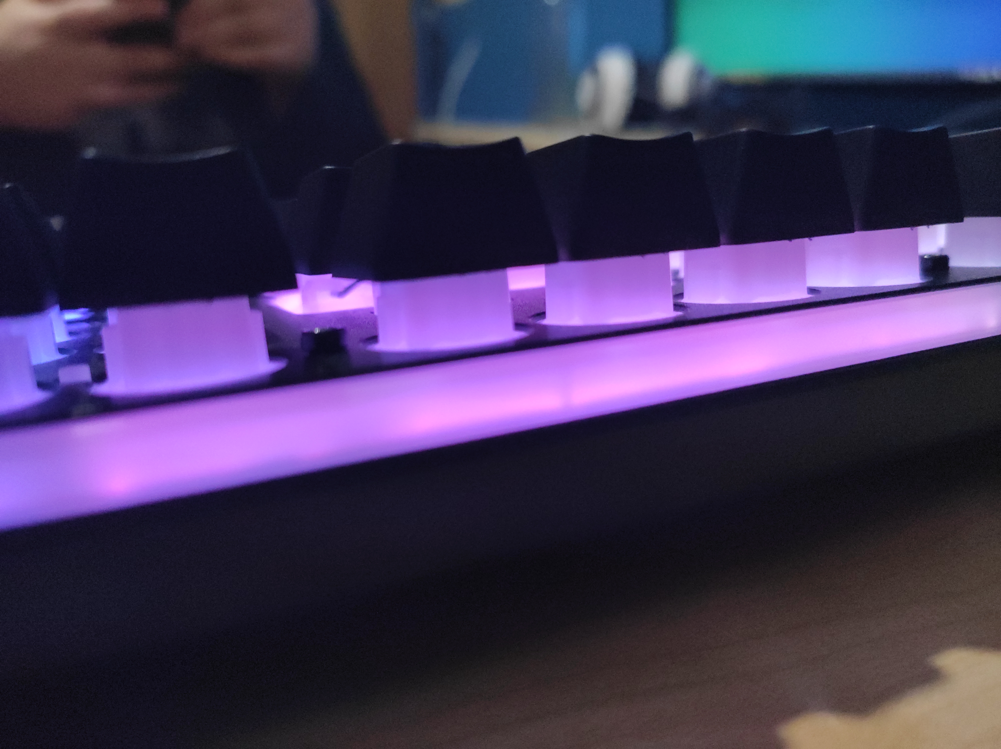 La cuestión es que no todo el teclado se ilumina de manera uniforme, pues cerca de los bordes podemos ver como apenas llega la iluminación de manera correcta, así como en algunas zonas del teclado. No es que sea algo para matar a alguien, pero si una de las cosas que destaca es la iluminación periférica, debería estar correctamente hecha. Esto se acrecienta especialmente en la zona de los leds de funciones del teclado, donde añado que el led de bloquear desplazamiento no se ilumina (al menos justamente en mi teclado).