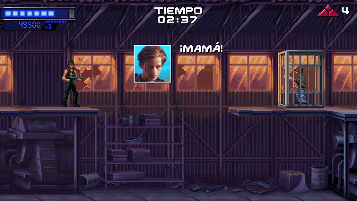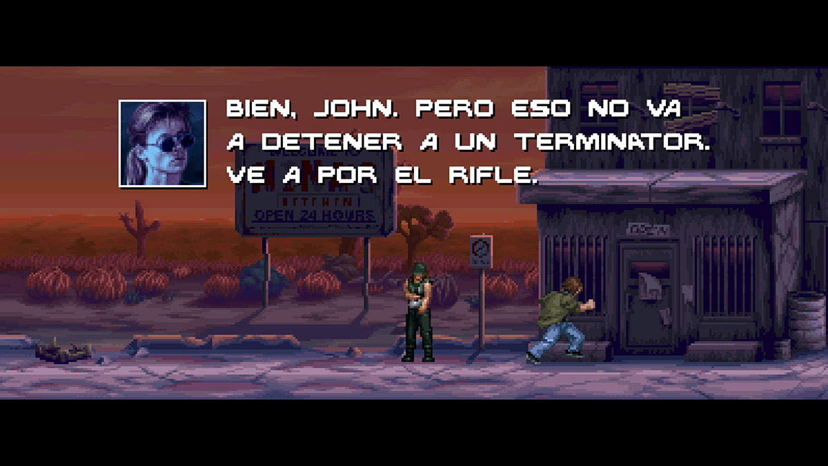 Terminator 2D: No Fate es un juego de plataformas y disparos fiel a esos clásicos de las recreativas de los 90’s. Inicialmente solo tendremos dos dificultades: Dinero Fácil (fácil) que nos da continuaciones infinitas, No Problemo (normal) que nos da continuaciones limitadas.