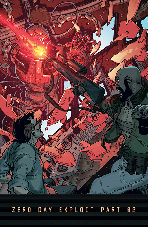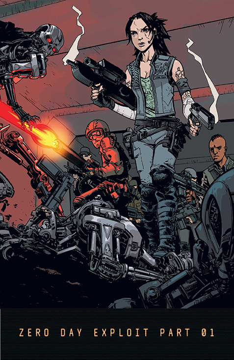 Escritos por Arvid Nelson (Rex Mundi, Rage: After the Impact), TERMINATOR: RESISTANCE Zero Day Exploit cuenta con un apartado artístico a cargo de Andy MacDonald (The Terminator: 2029 to 1984,) y Pete Woods (Cryptocracy, Terminator Salvation: The Final Battle) con la labor de colorista a cargo de Dan Jackson (Stranger Things: Zombie Boys, Aliens) y con Nate Piekos of Blambot (The Mask: I Pledge Allegiance to the Mask, The Umbrella Academy) como rotulista. TERMINATOR: RESISTANCE Zero Day Exploit Parte 1 & Parte 2 cuenta con una portada elaborada por Raymond Swanland (Alien vs. Predator, Predator).