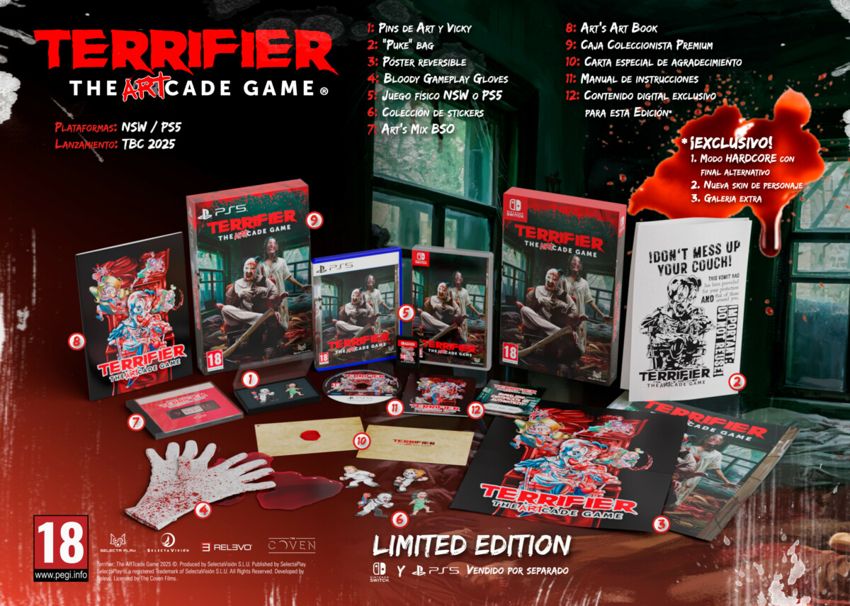 Terrifier: The ARTcade Game, publicado por Selecta Play y desarrollado por Relevo Games, llegará el 21 de noviembre a Steam, Nintendo Switch, PlayStation 5 y Xbox Series, ofreciendo una propuesta de acción en 2D con estética retro inspirada en los clásicos beat ’em up. El título permite a los jugadores ponerse en la piel de Art the Clown, el personaje principal de la saga cinematográfica Terrifier, con el objetivo de eliminar a los responsables de diversas producciones que retratan sus crímenes.